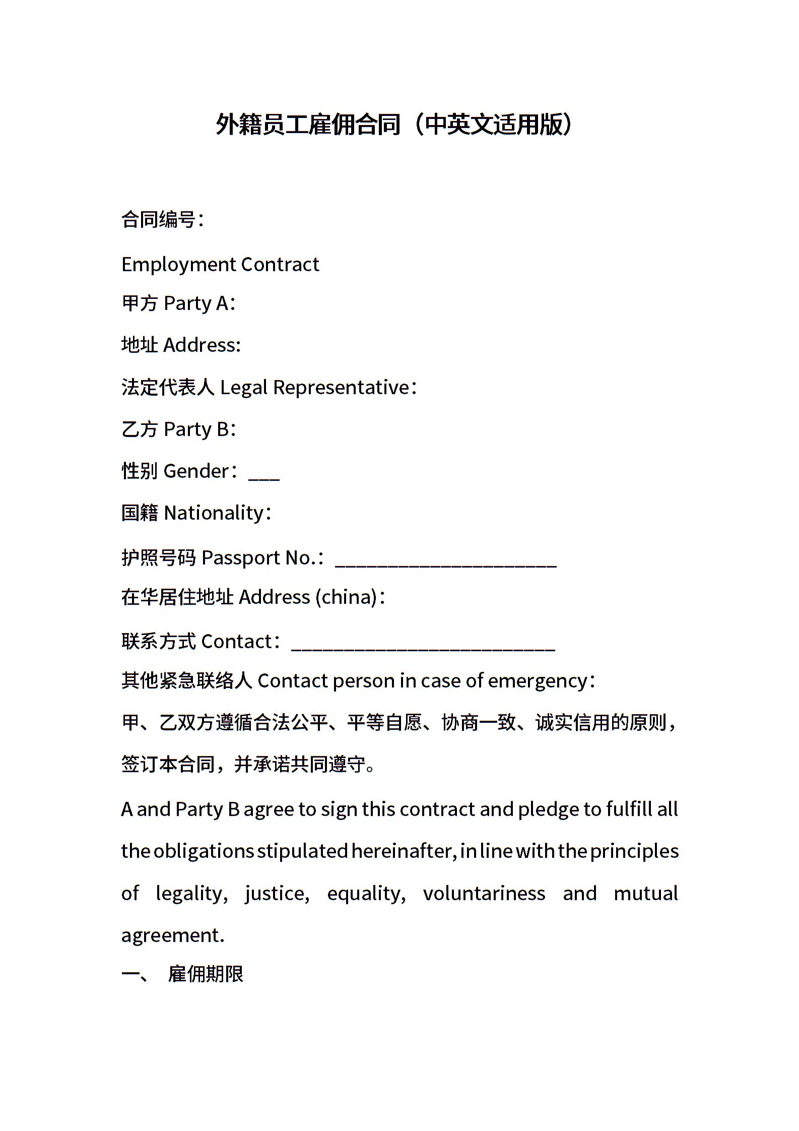 当前位置:量子办公 > 合同模板 > 英文合同 >