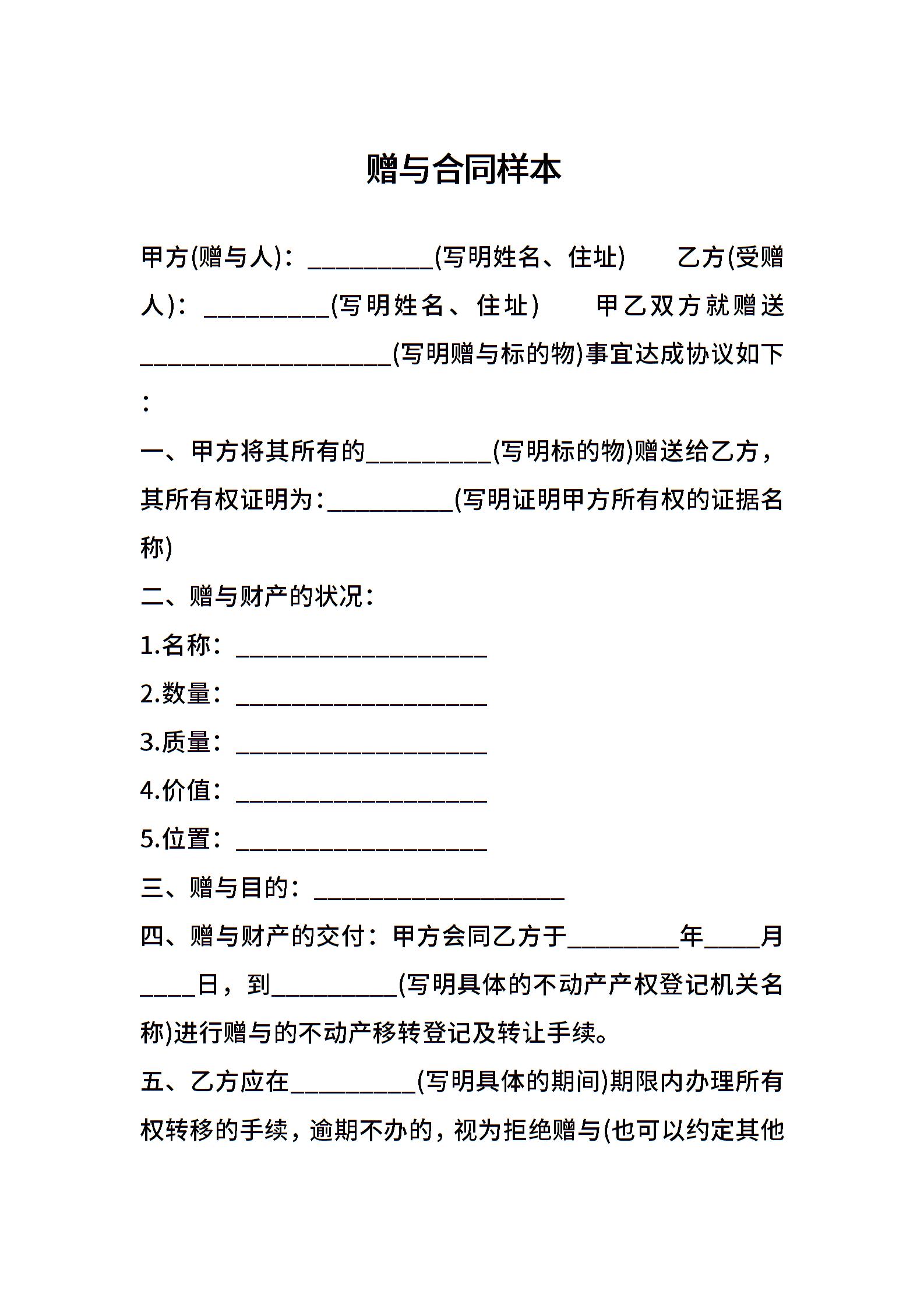 当前位置:量子办公 > 合同模板 > 赠与合同 >
