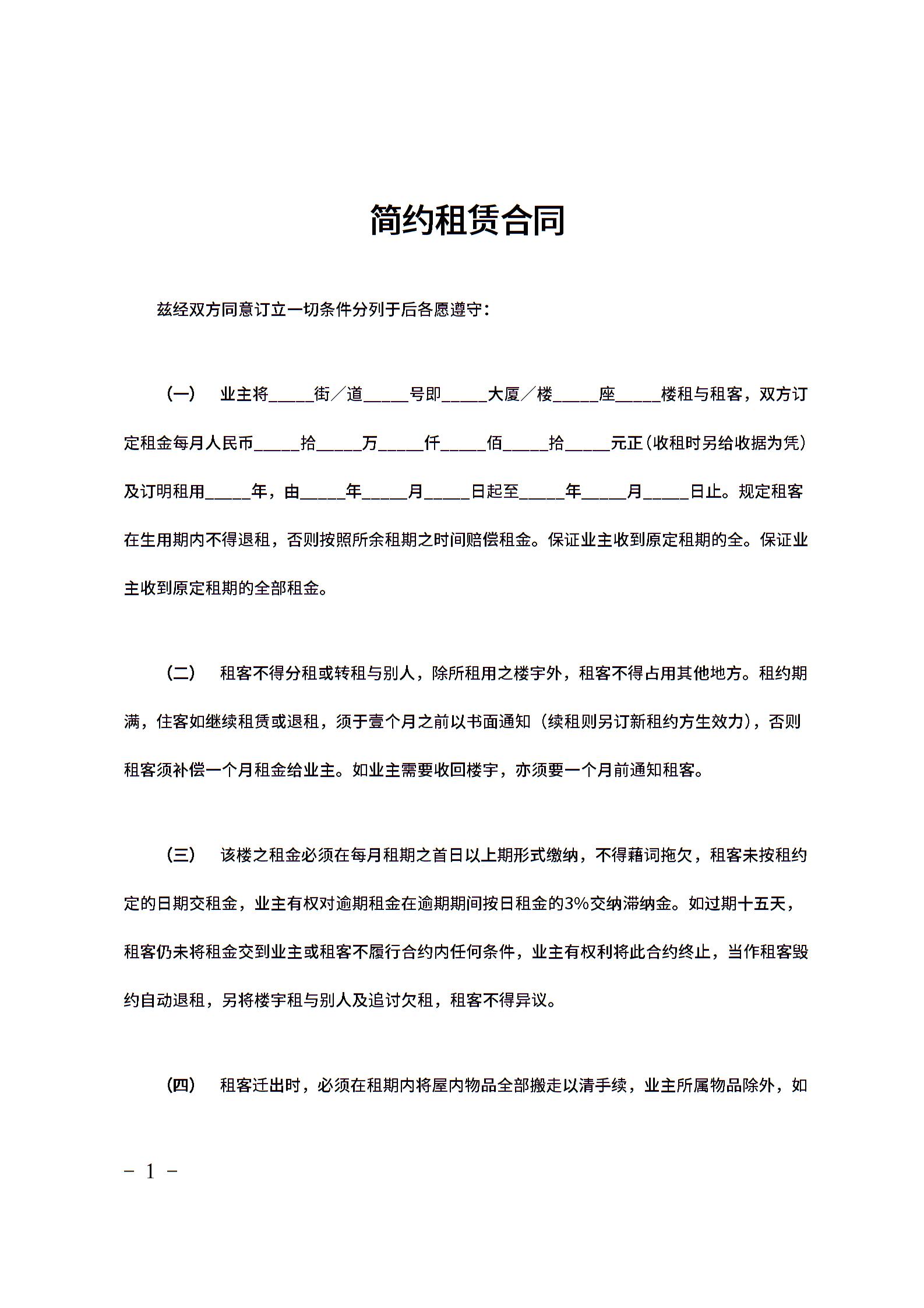 简约租赁合同范文