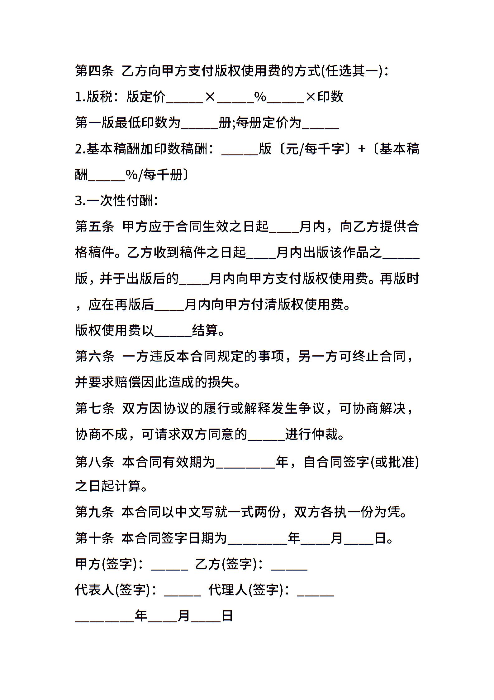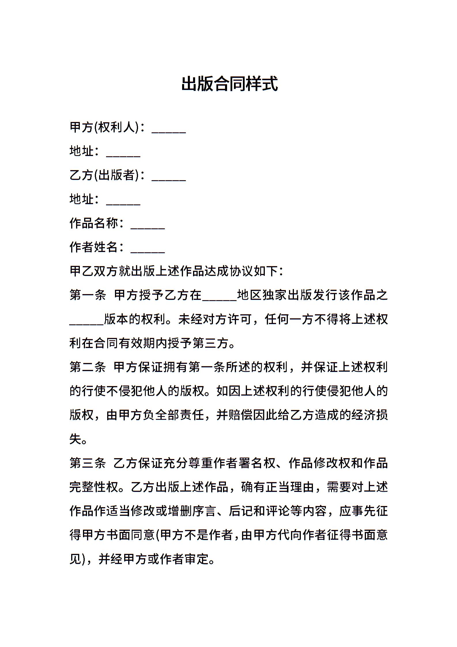 出版合同样式