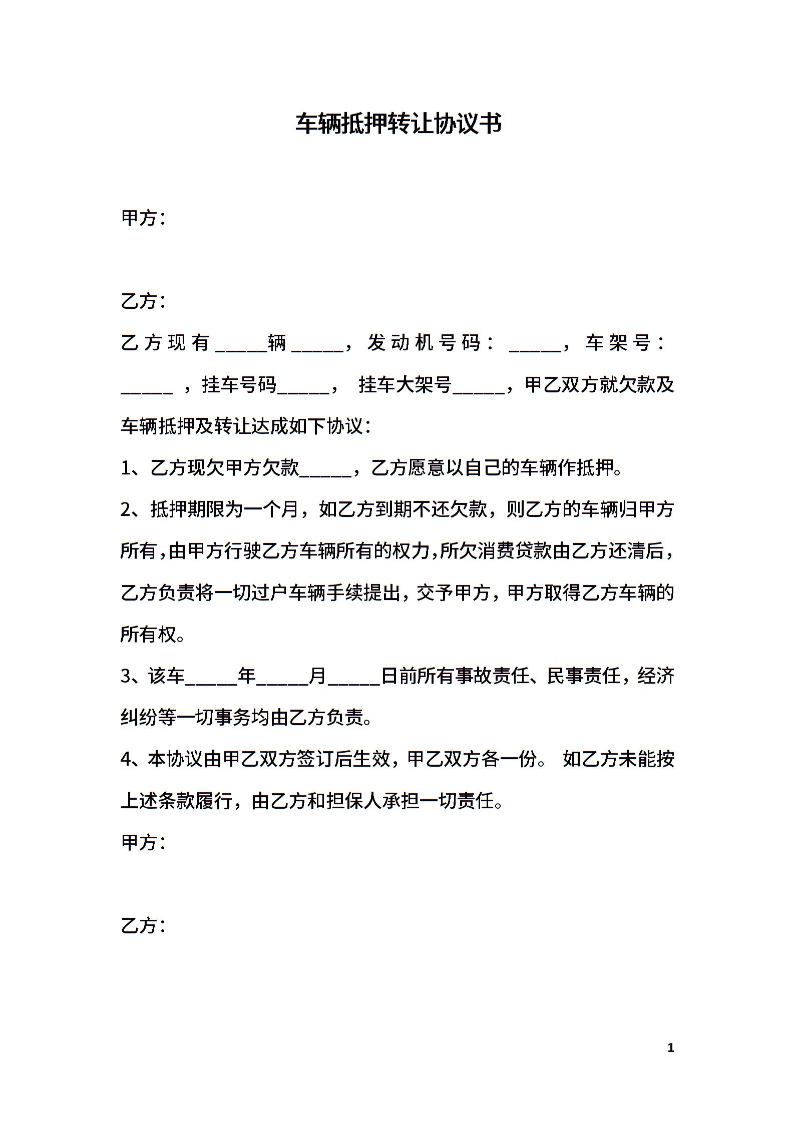 车辆抵押转让协议书