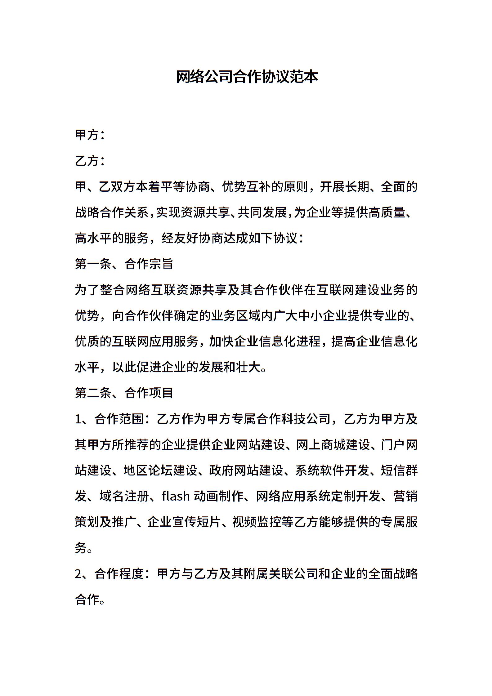 网络公司合作协议范本