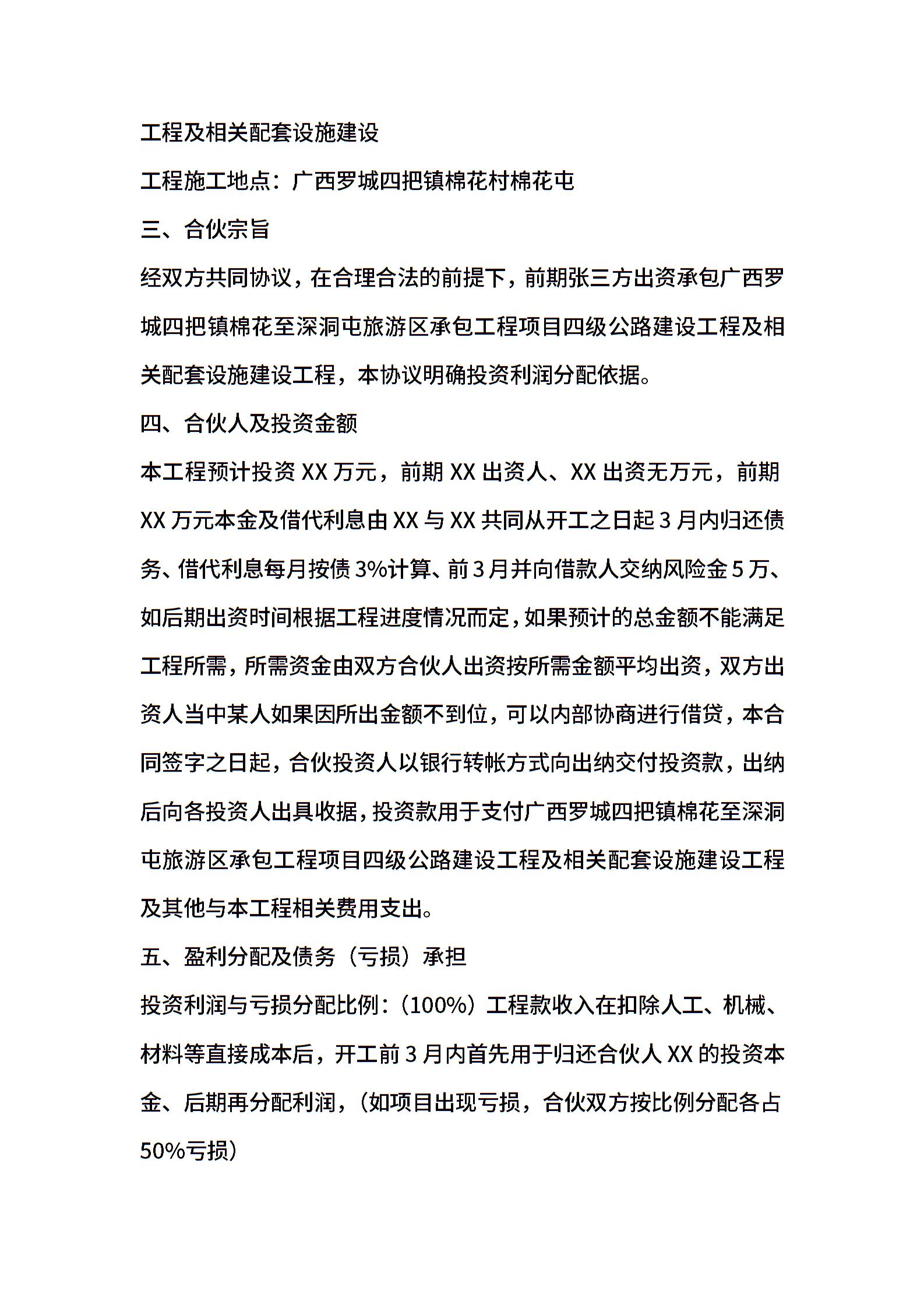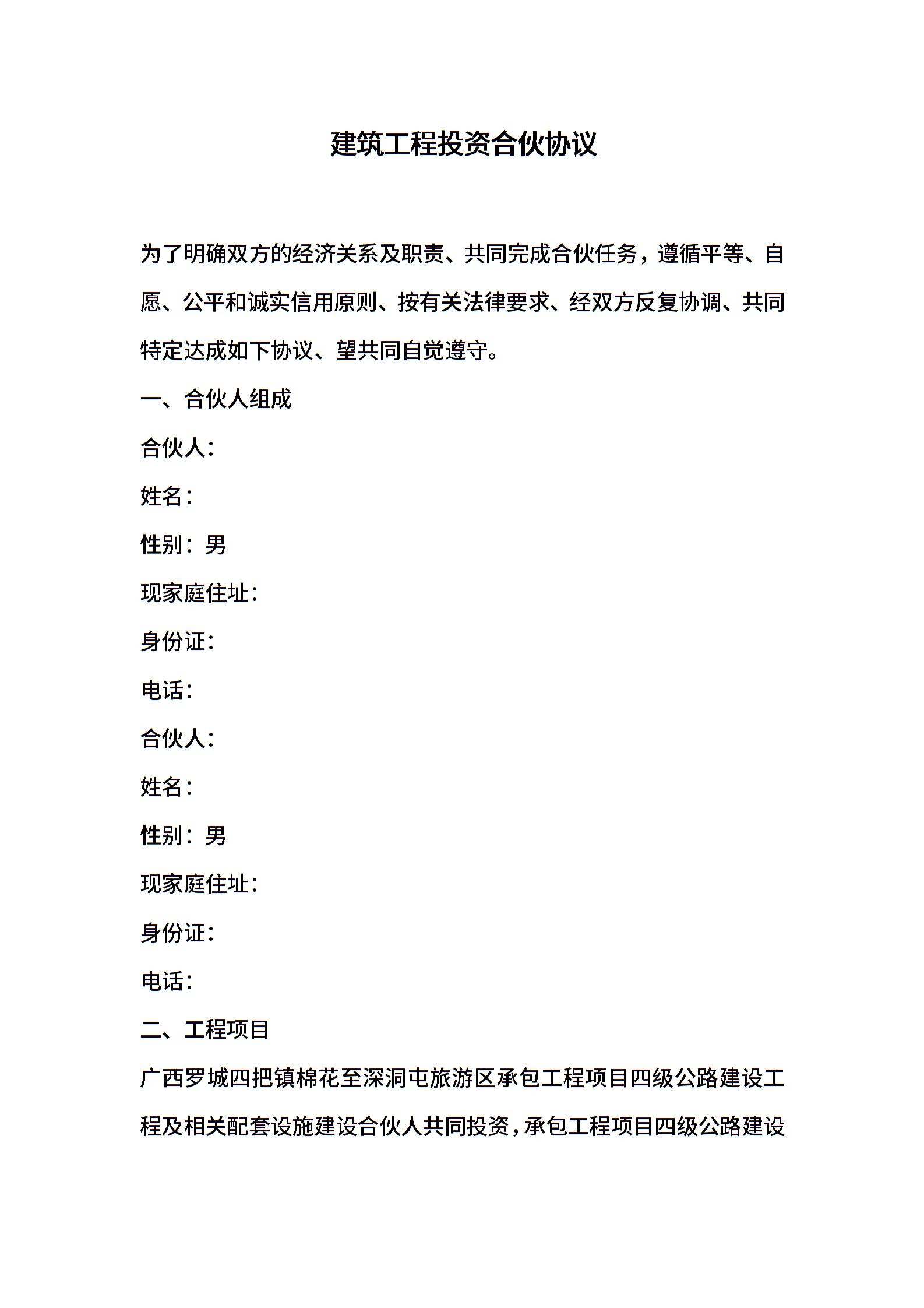建筑工程投资合伙协议 (1)