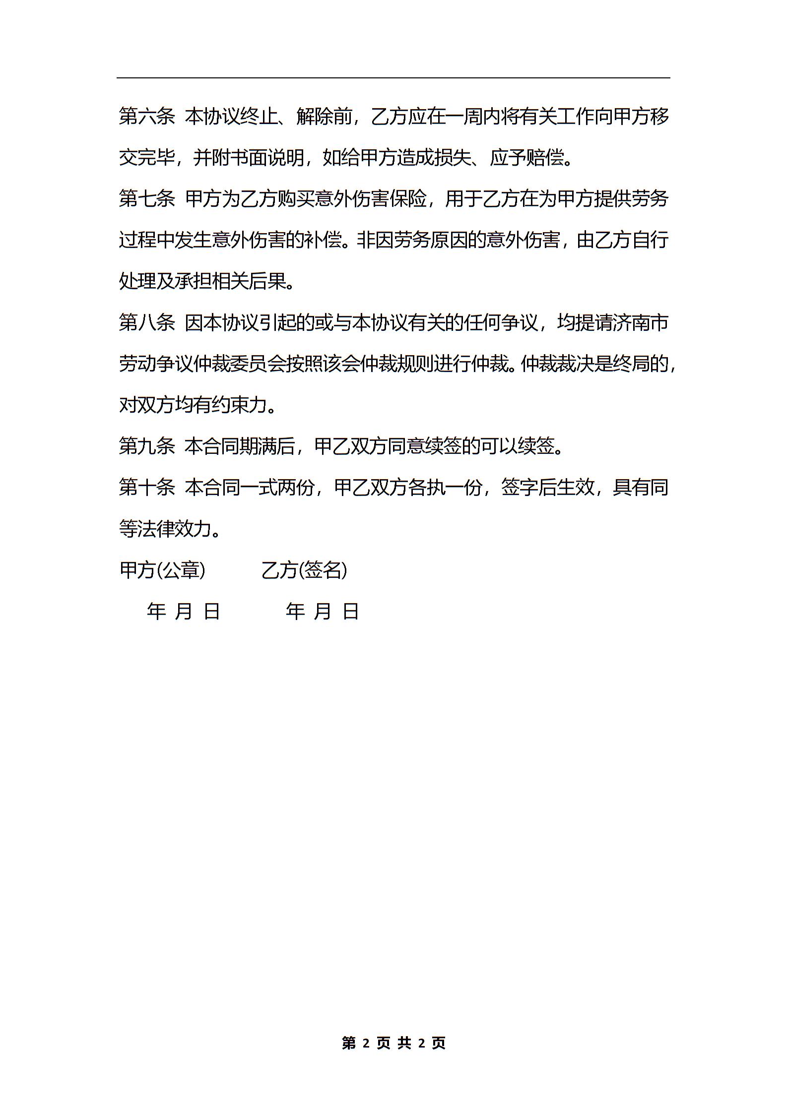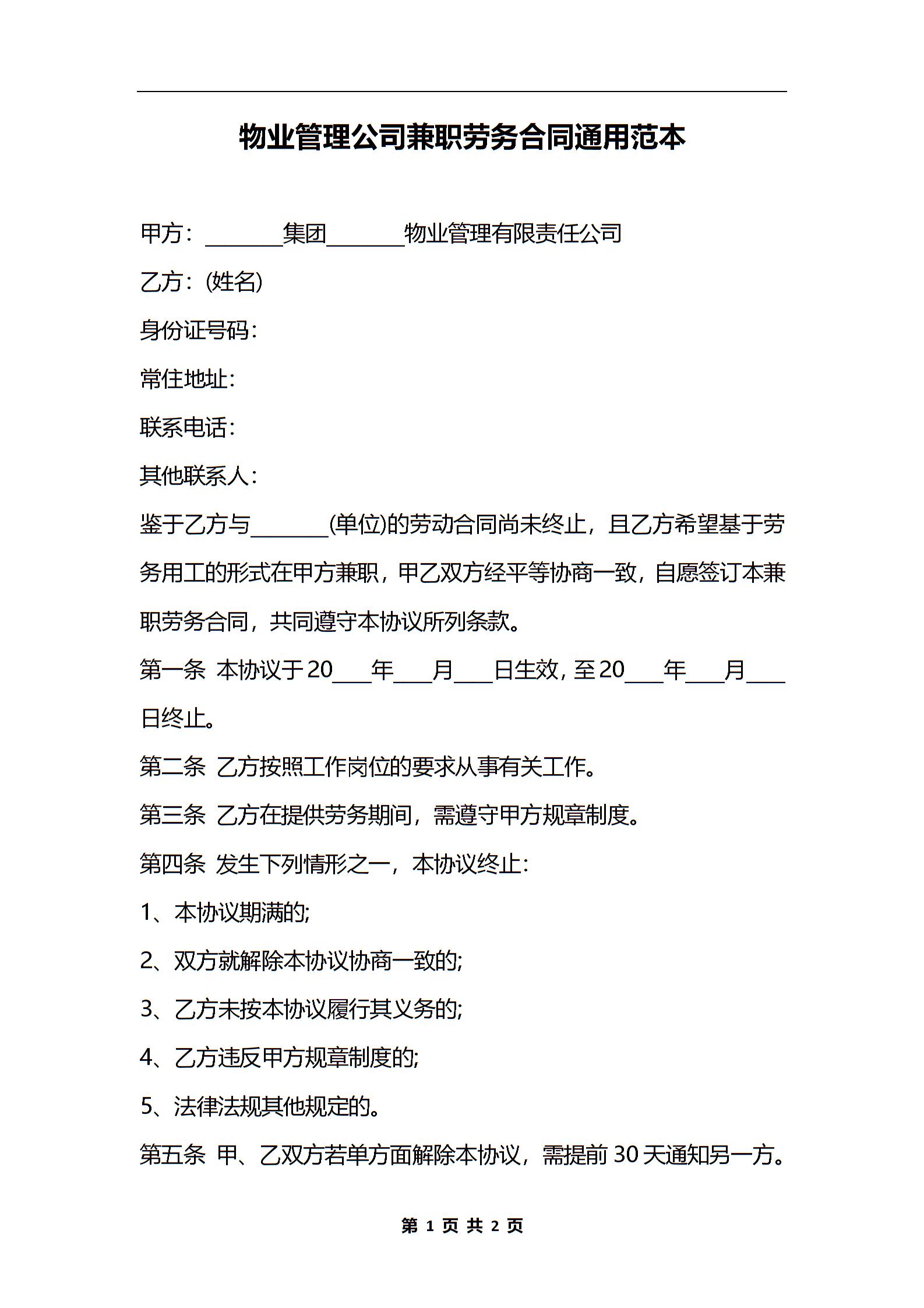 物业管理公司兼职劳务合同通用范本