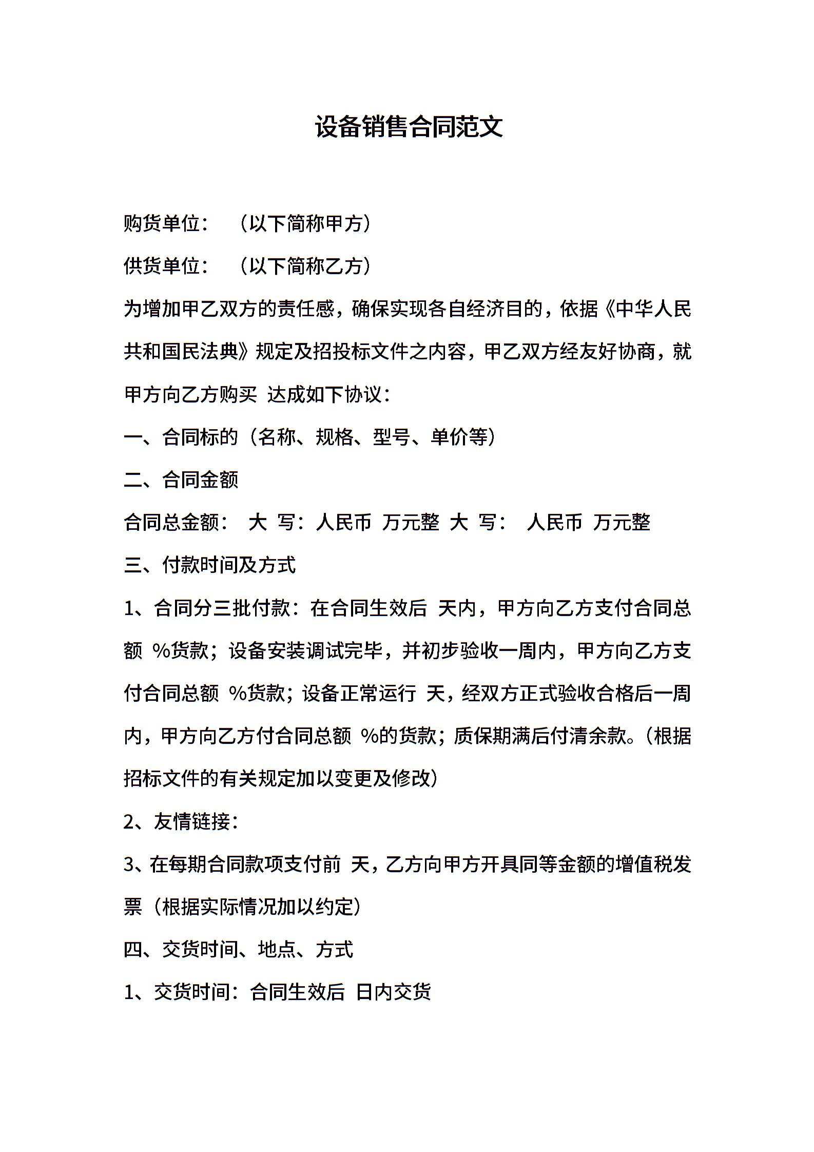 设备销售合同范文