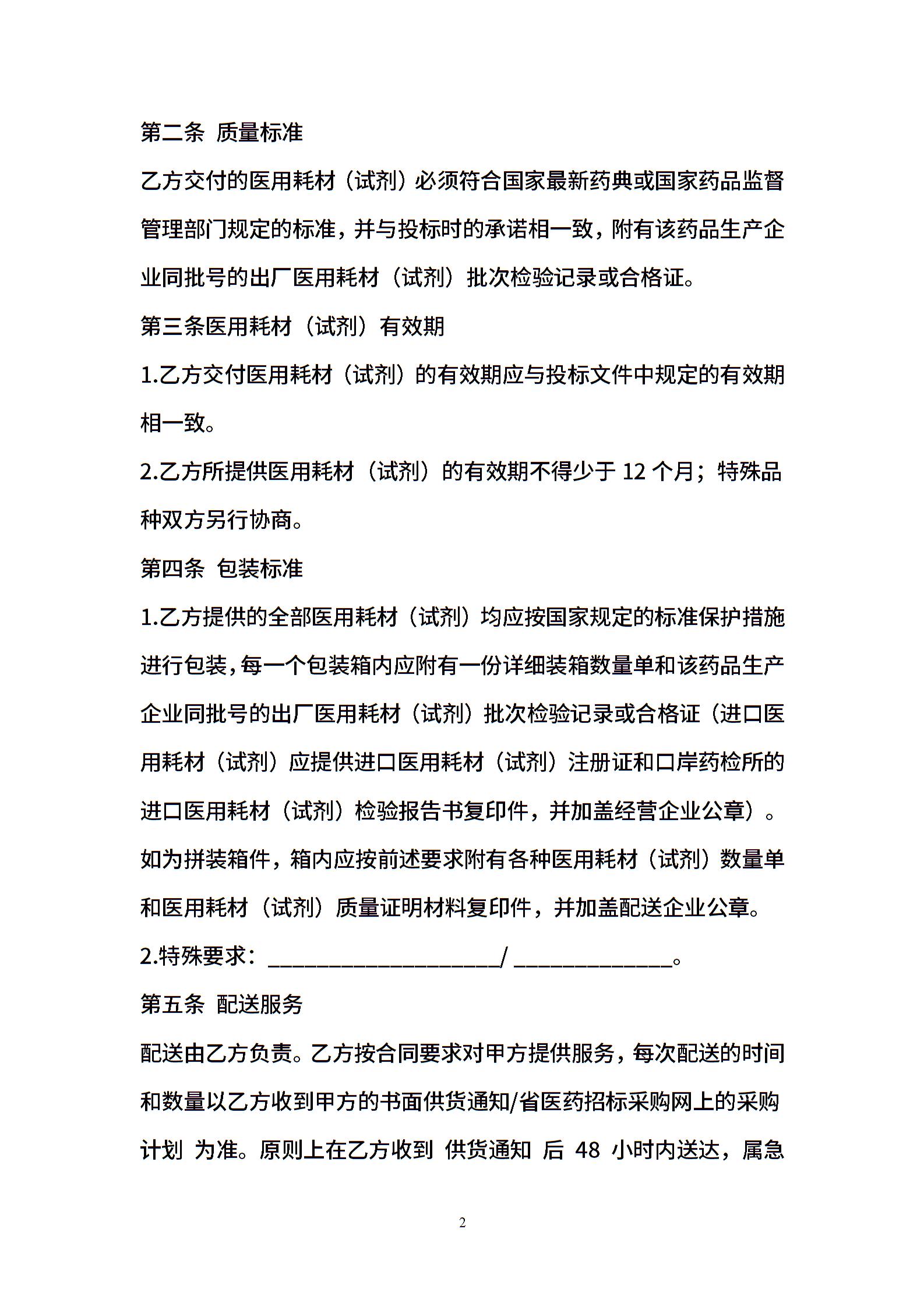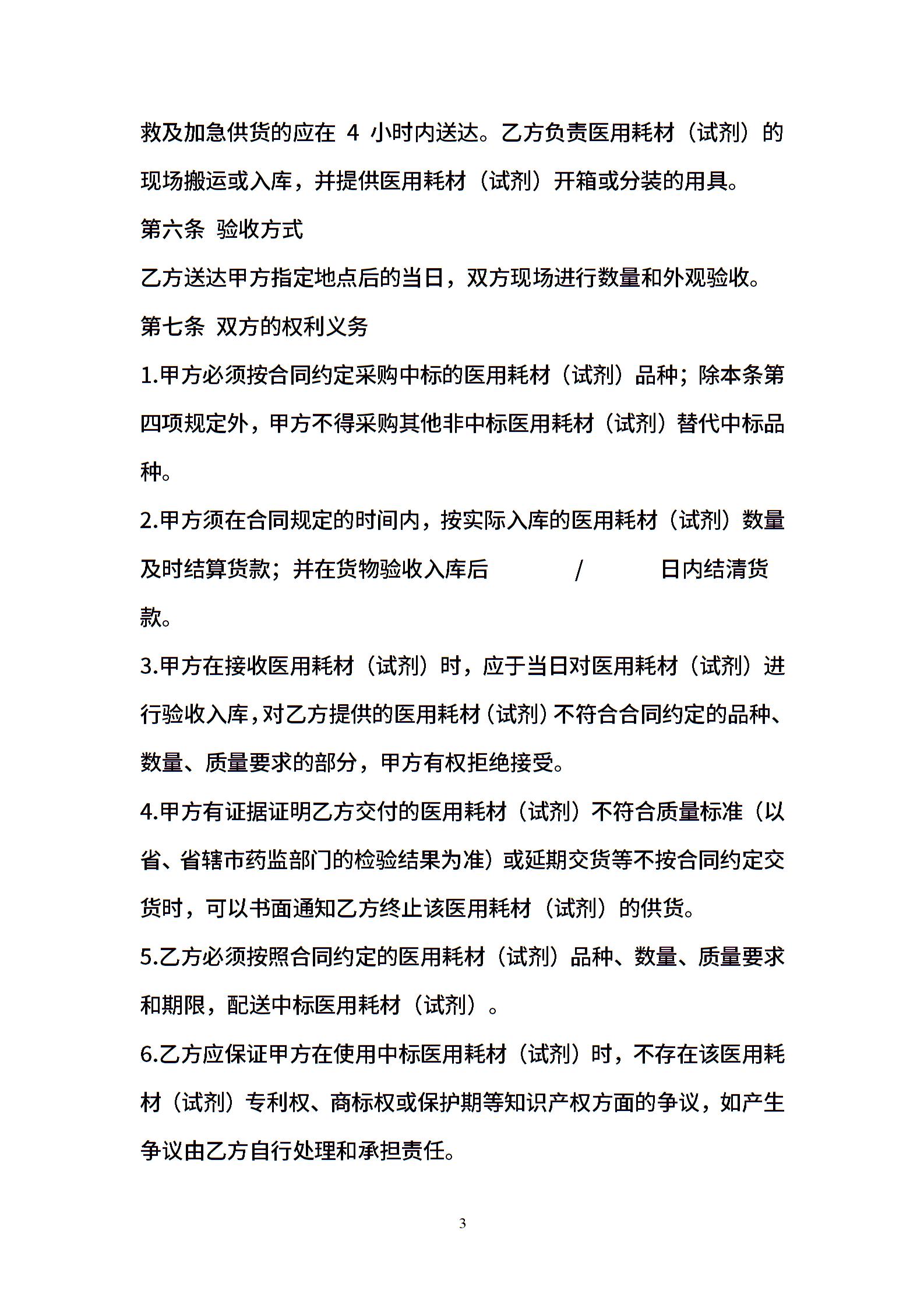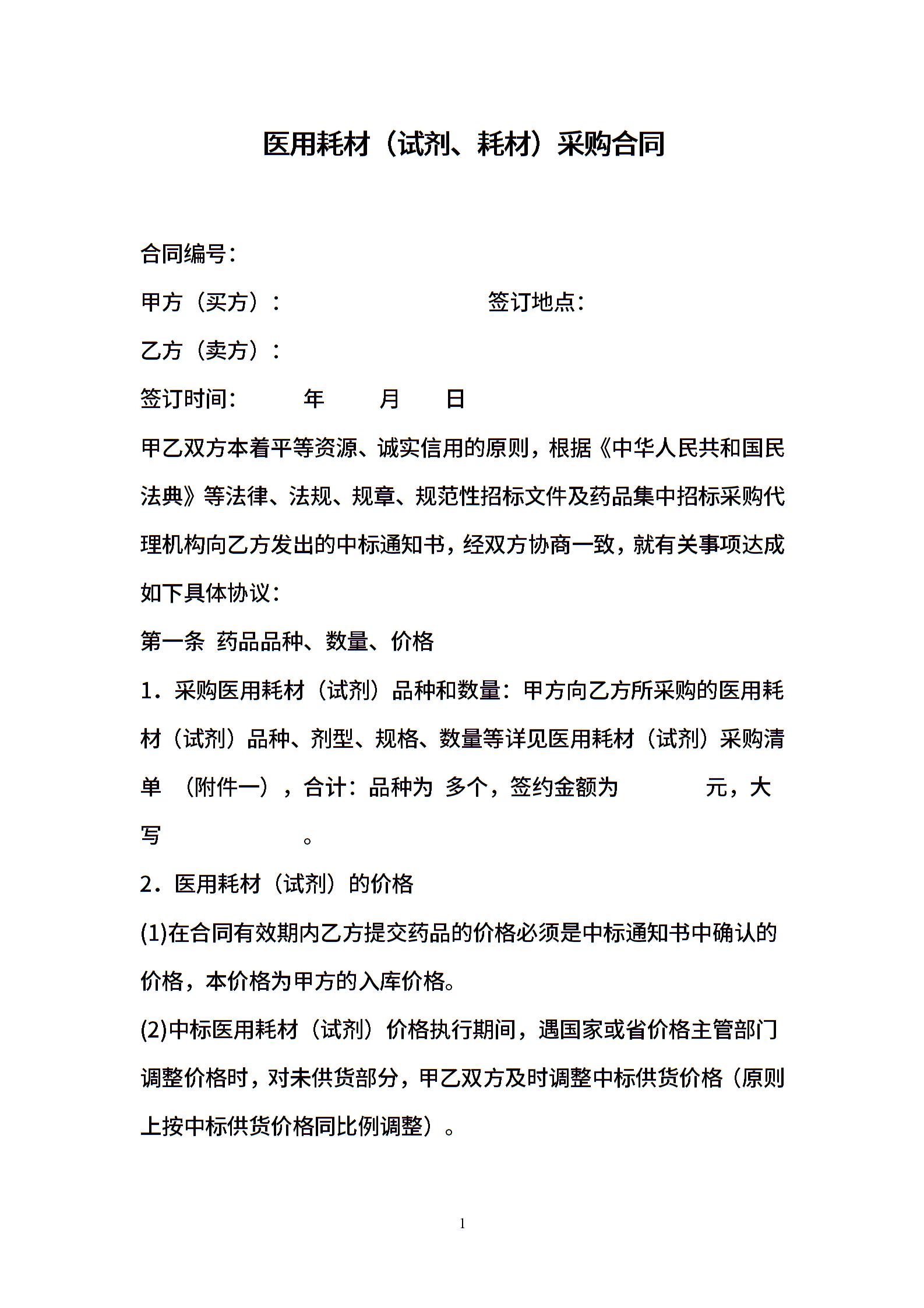 医用耗材(试剂)采购合同(签订样本)
