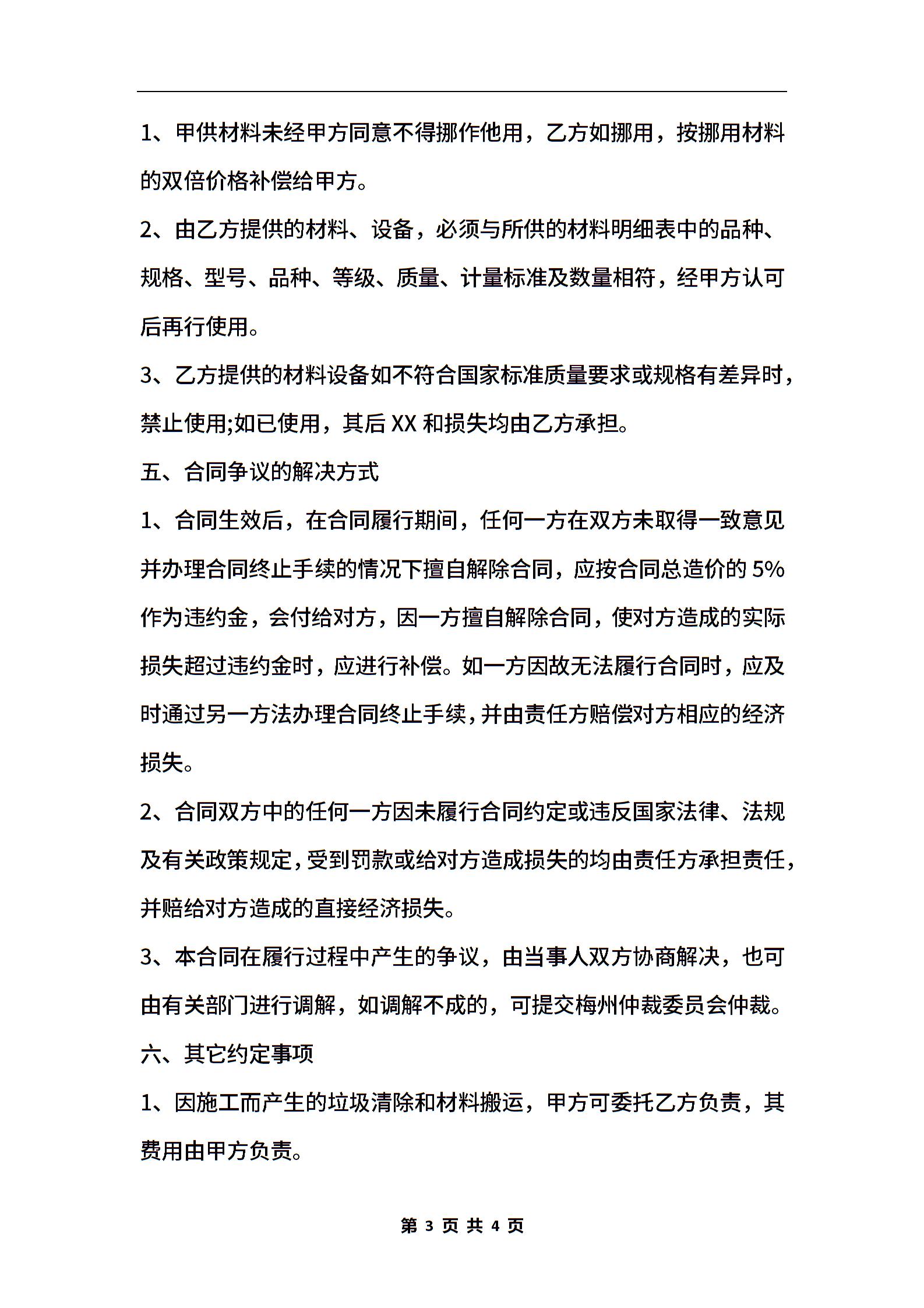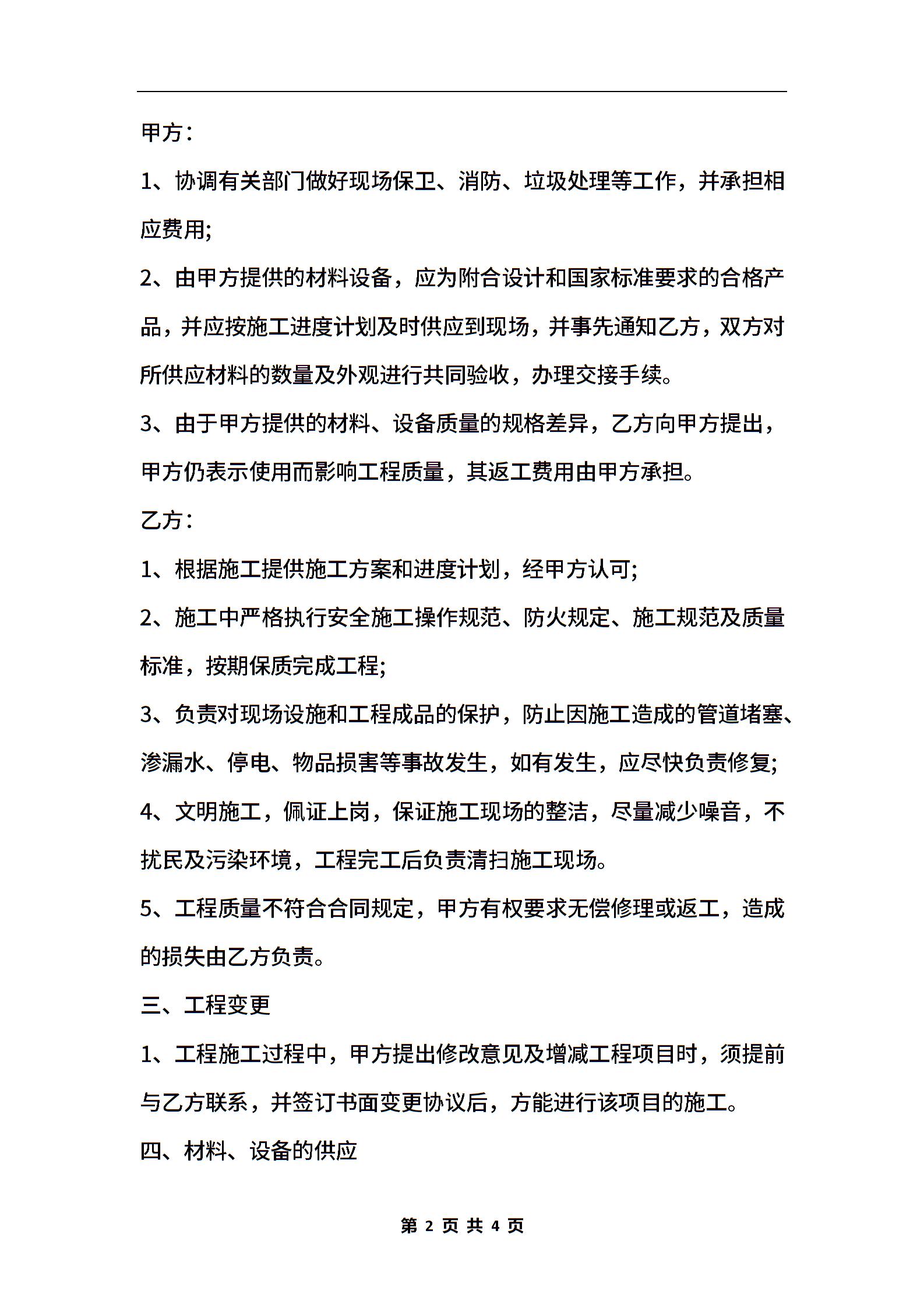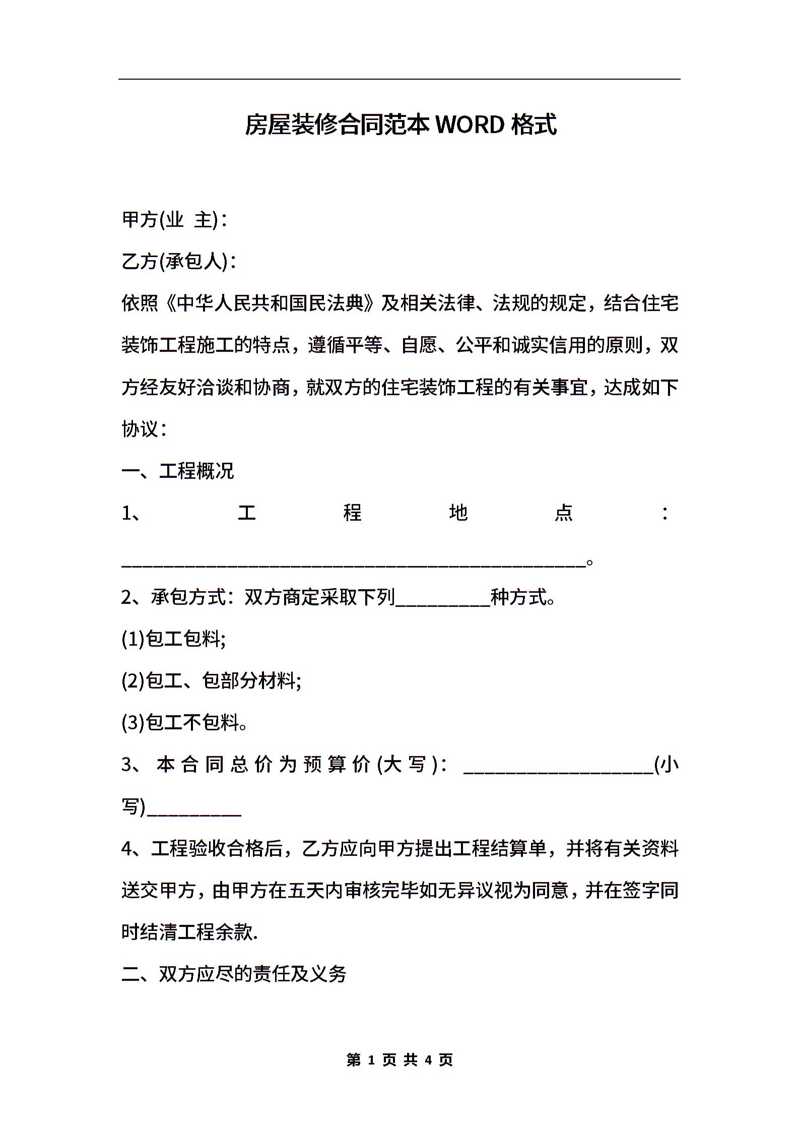 房屋装修合同范本WORD格式