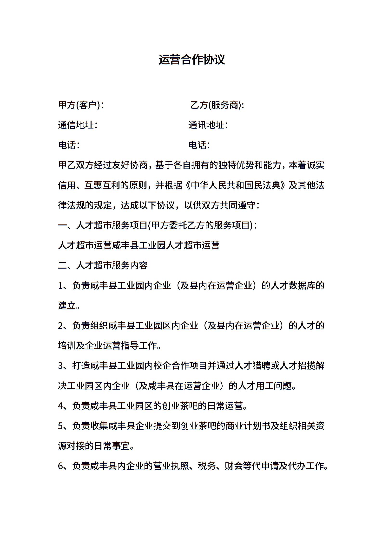 代运营合作协议
