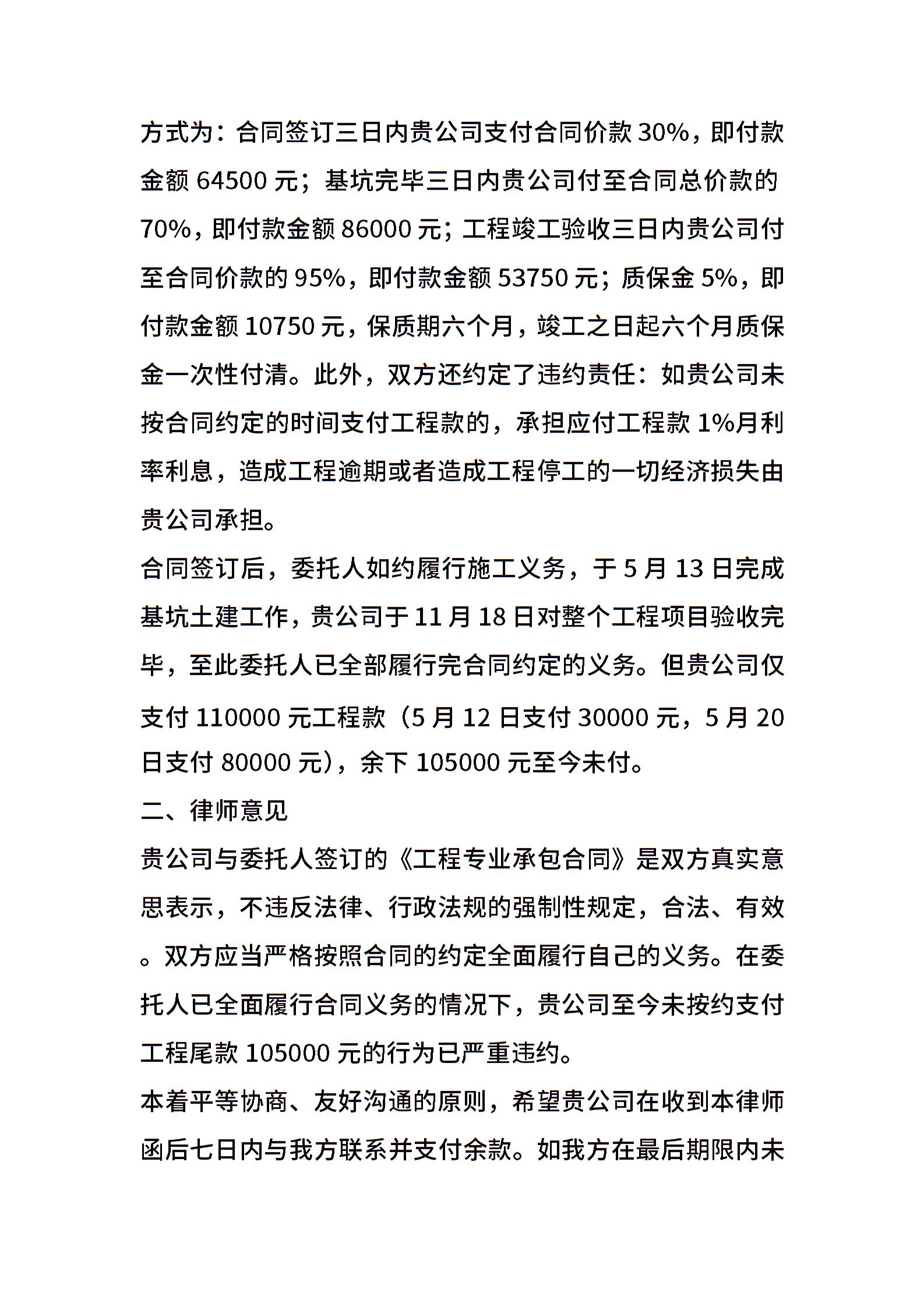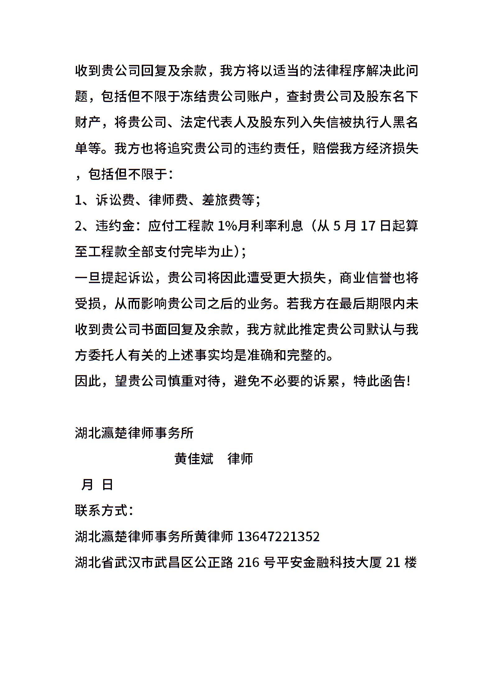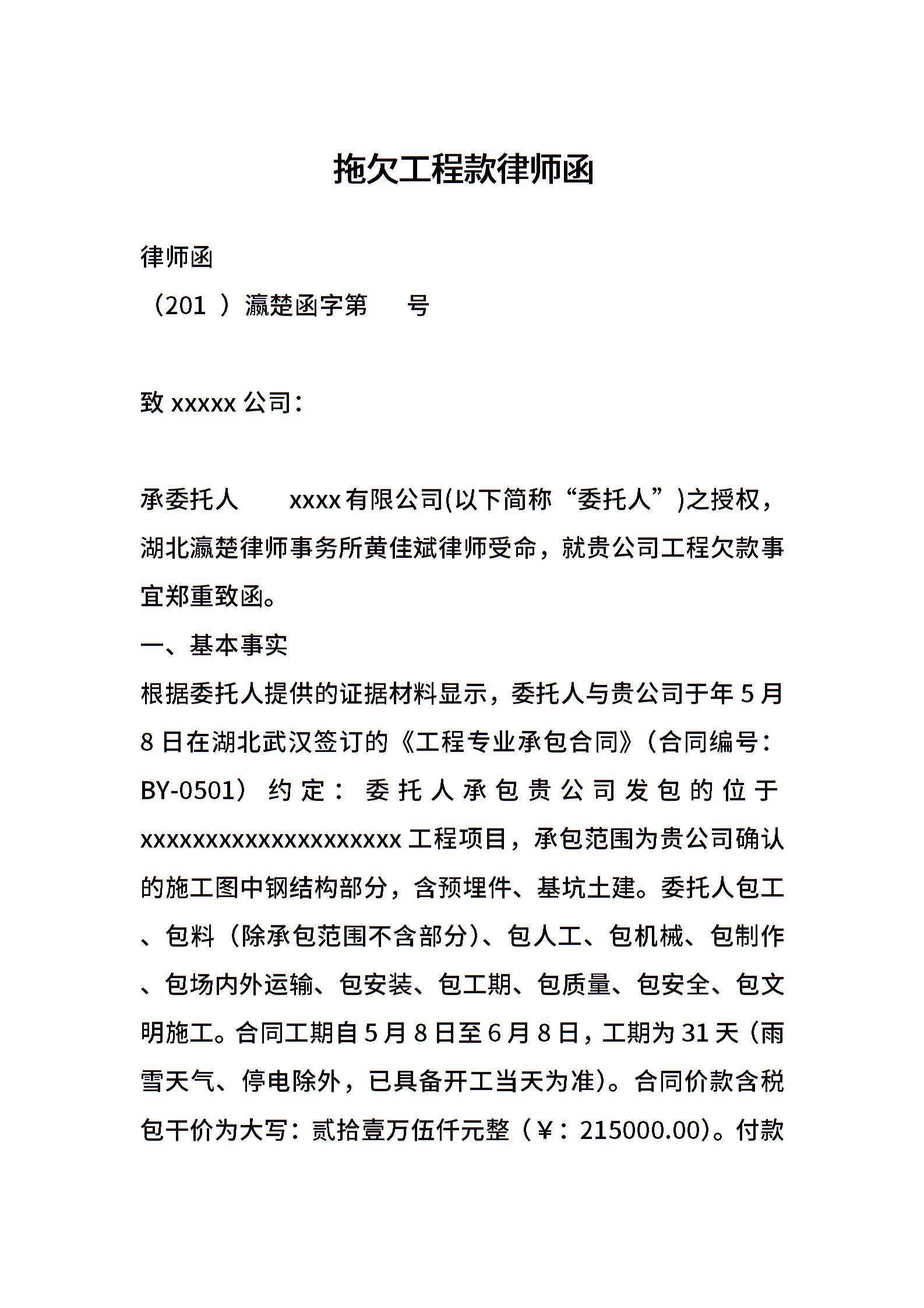 拖欠工程款律师函