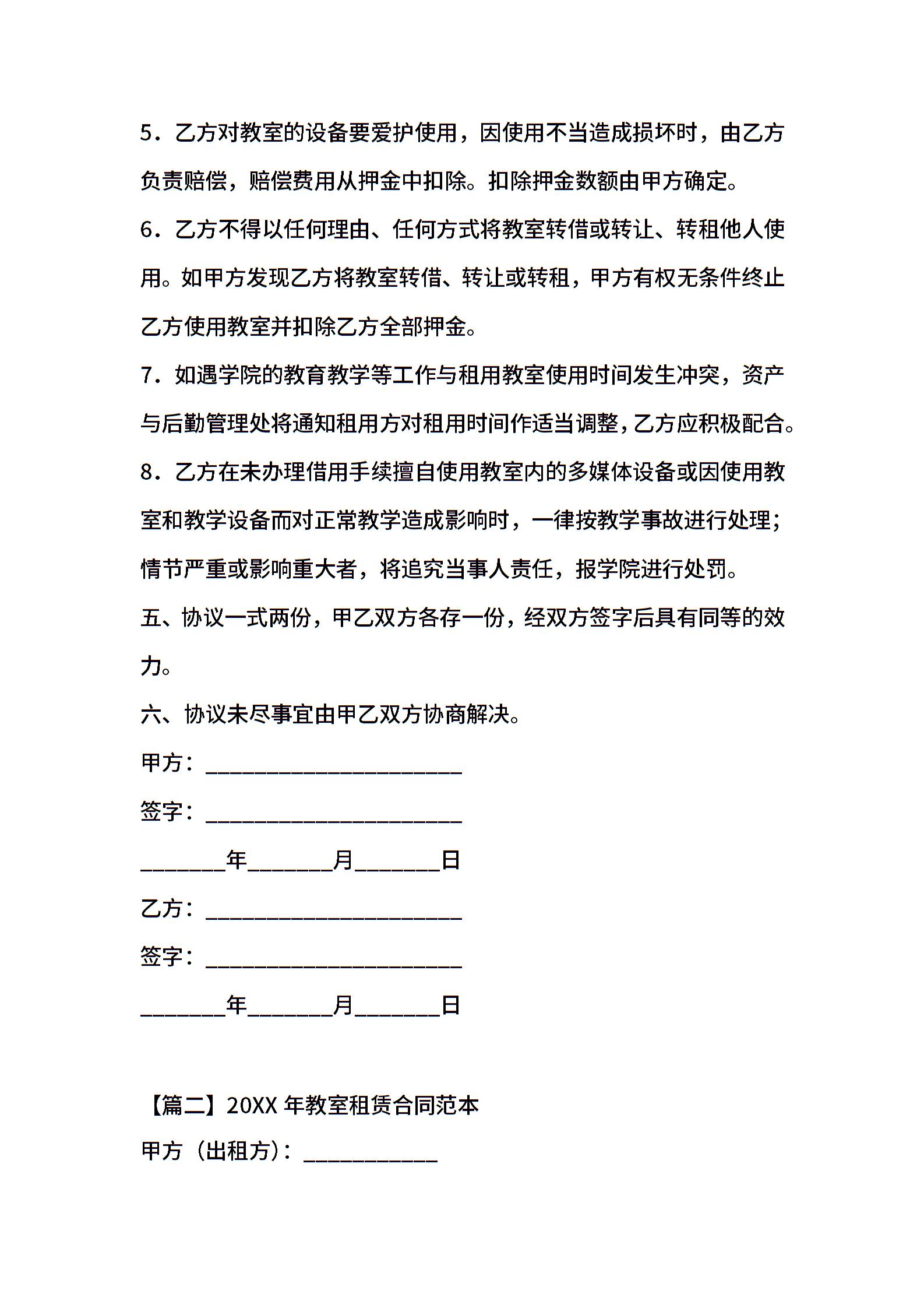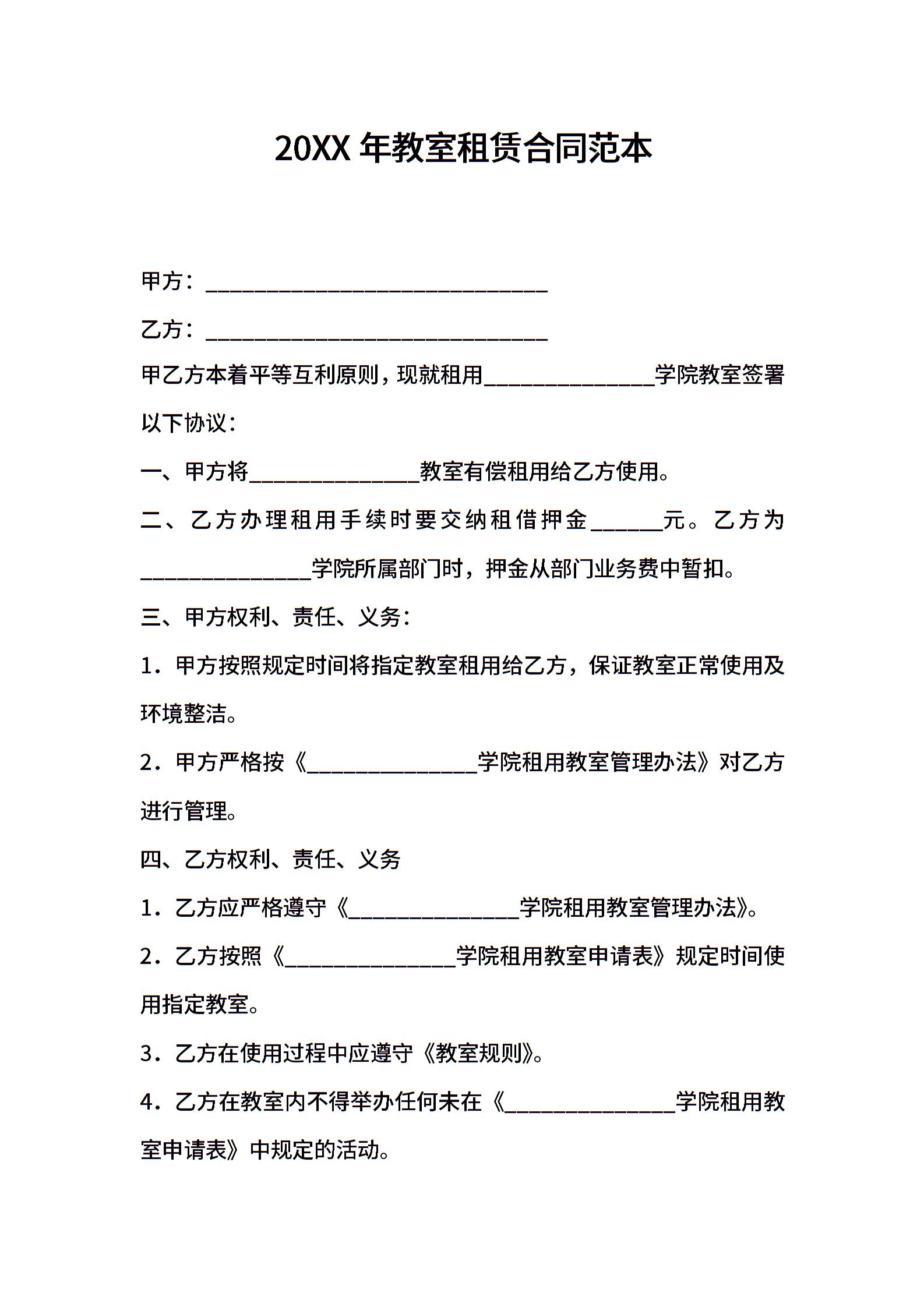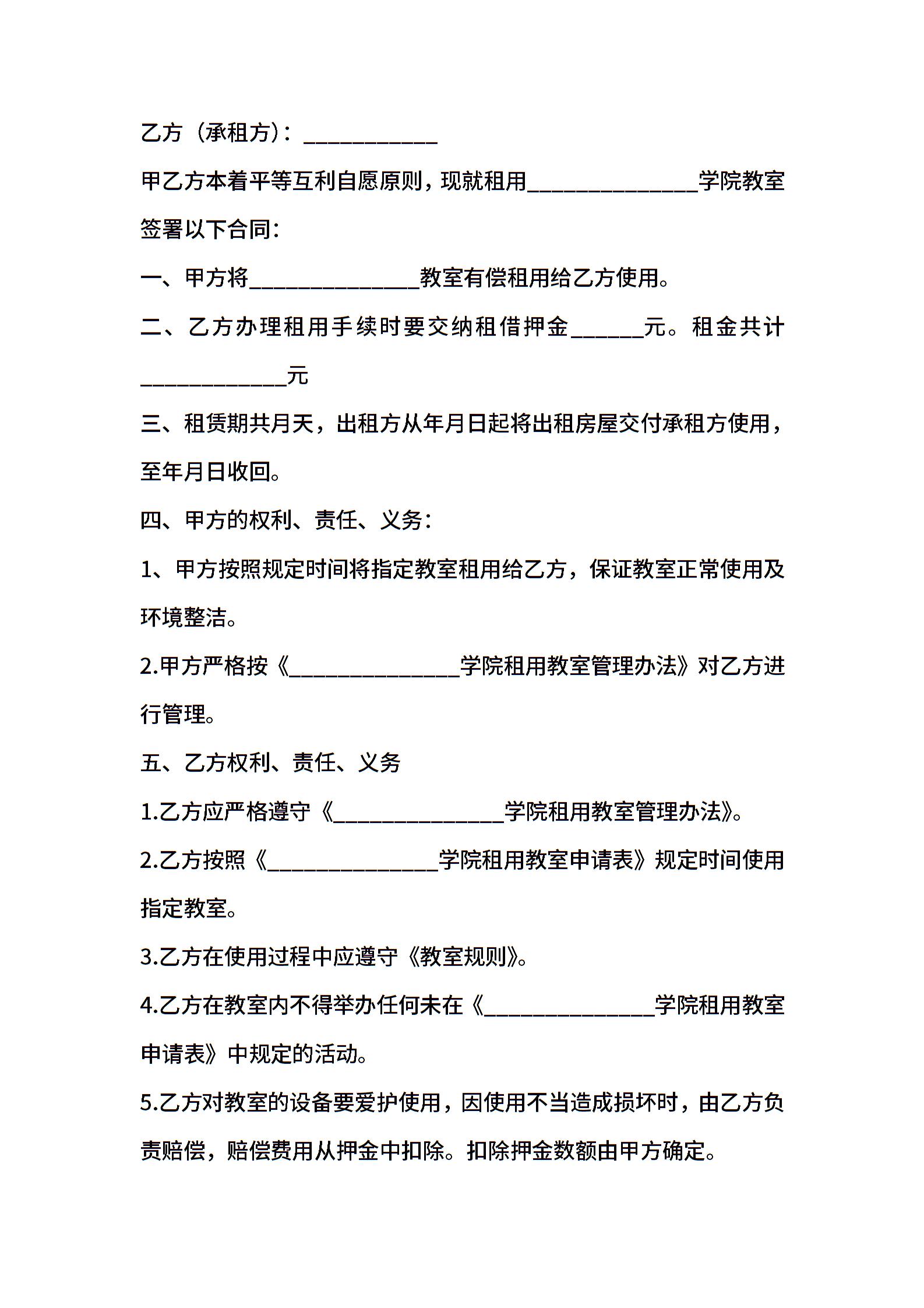 2021年教室租赁合同范本