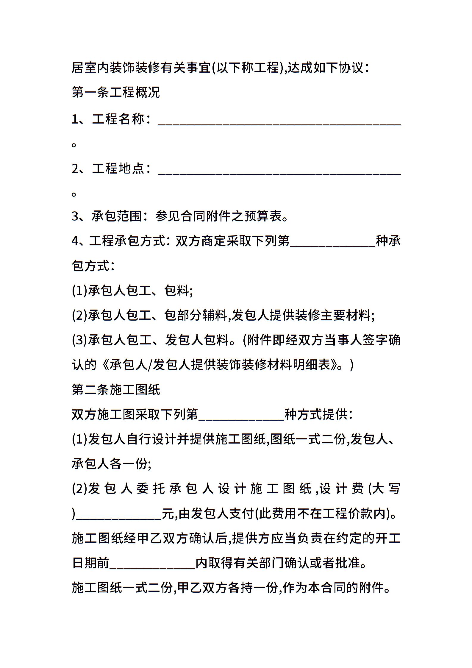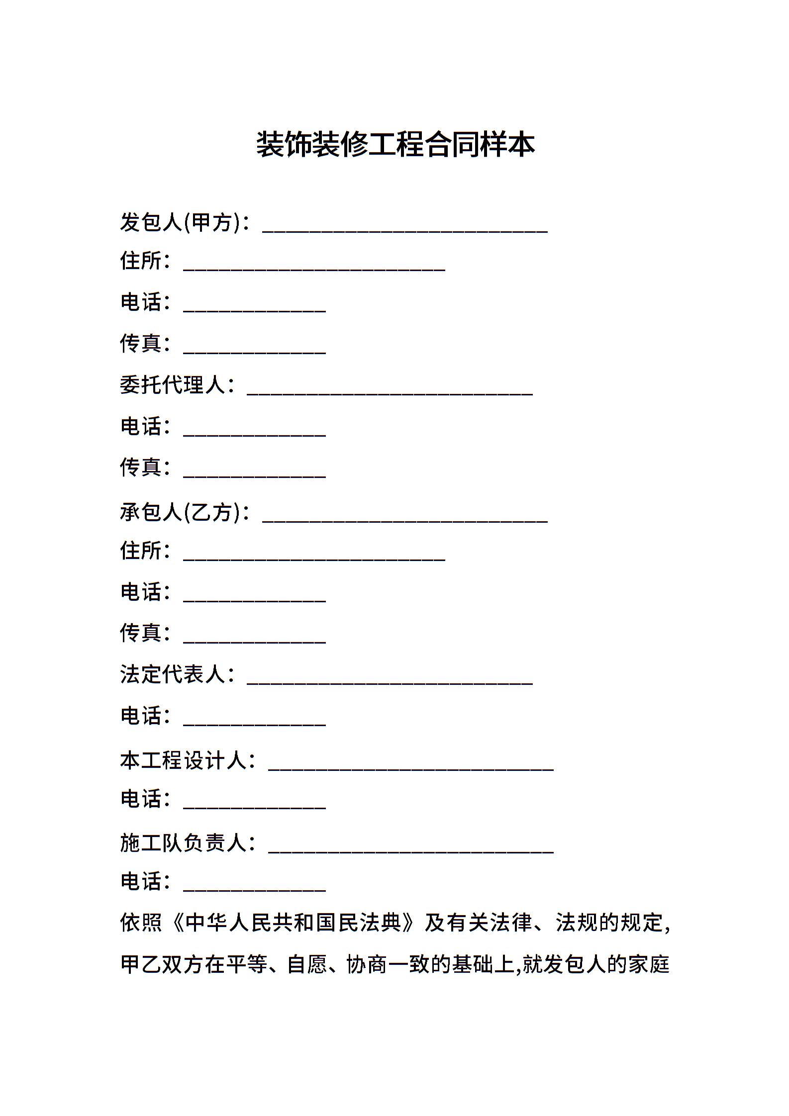 装饰装修工程合同样本