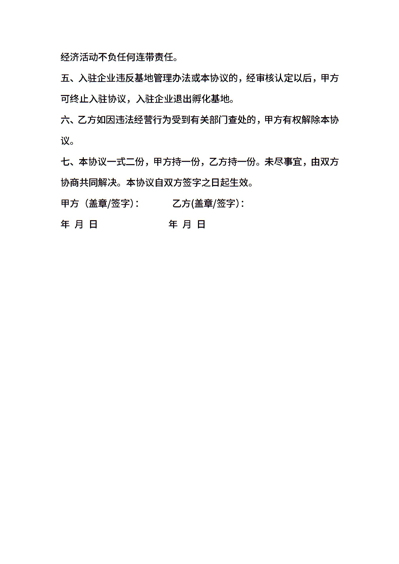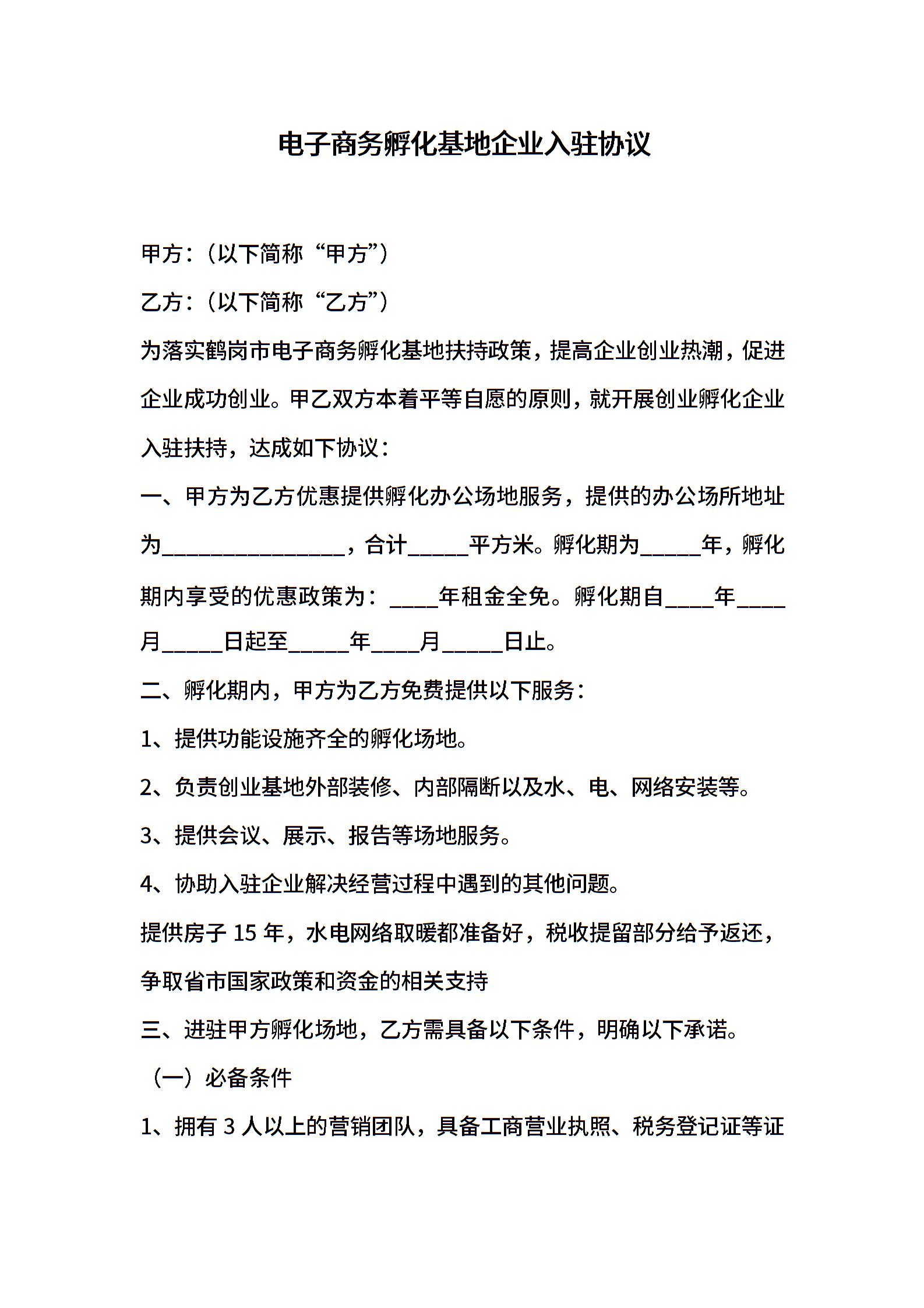 电子商务产业孵化园企业入驻协议