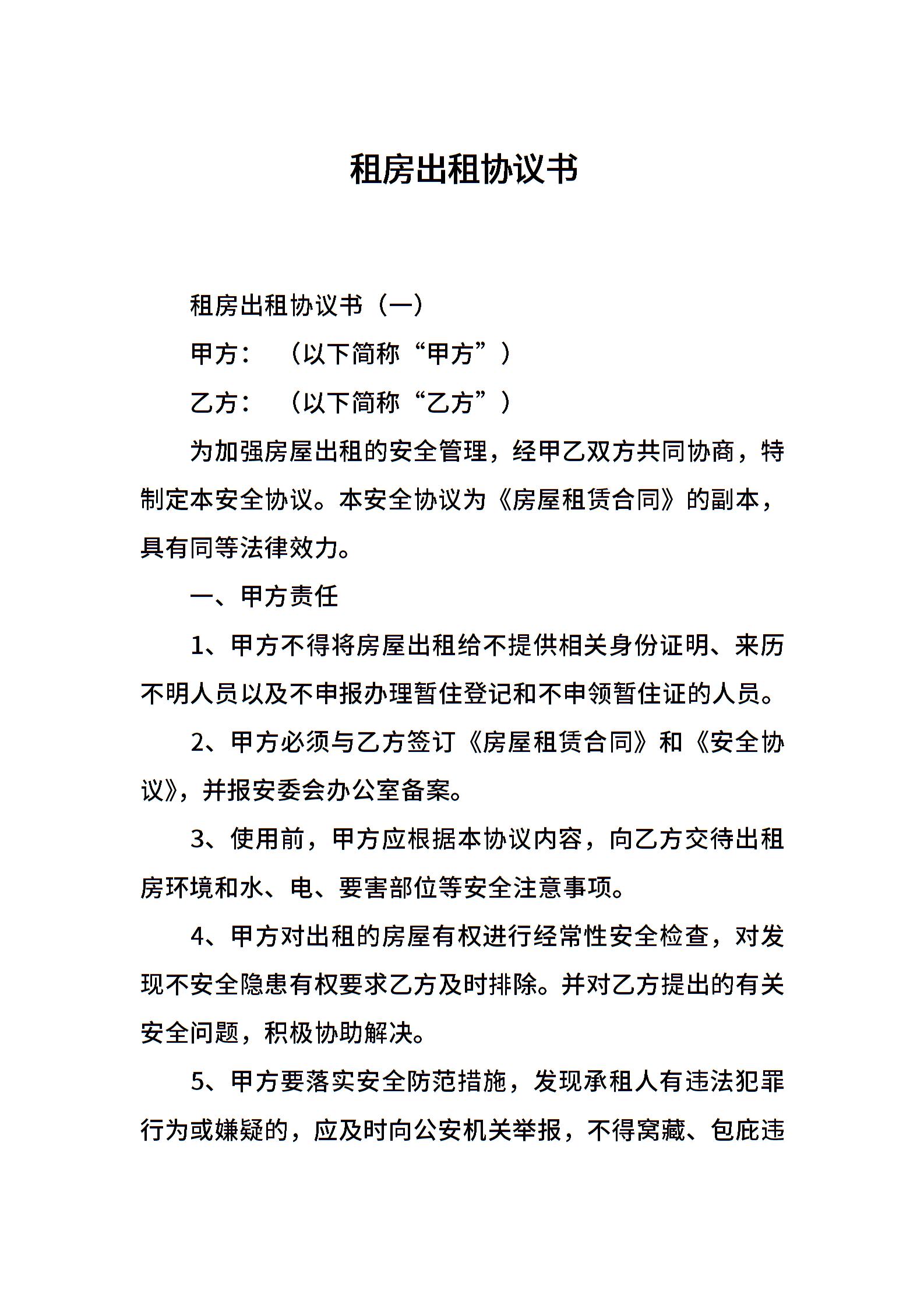 租房出租协议书