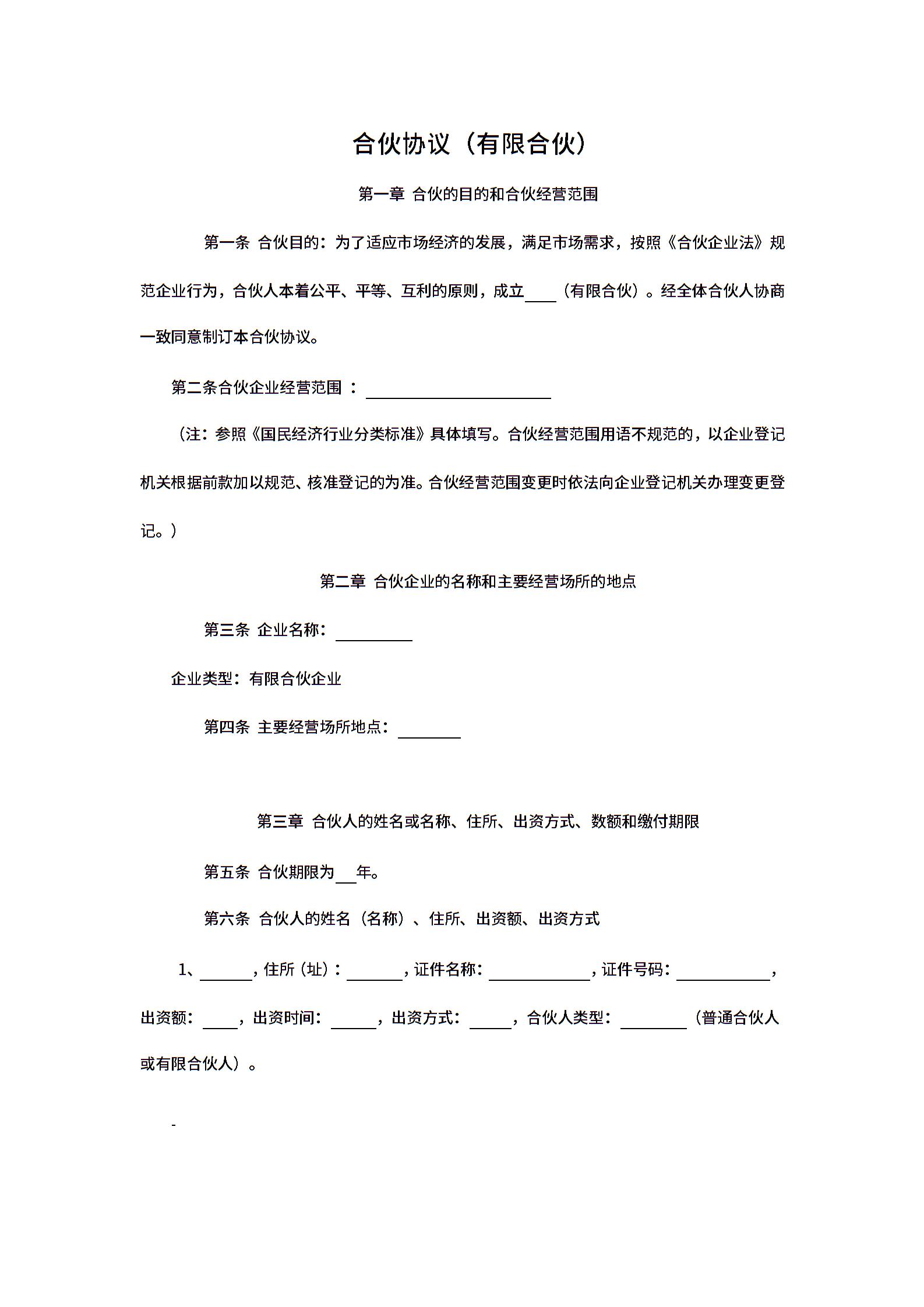 合伙协议(有限合伙企业)章程.docx