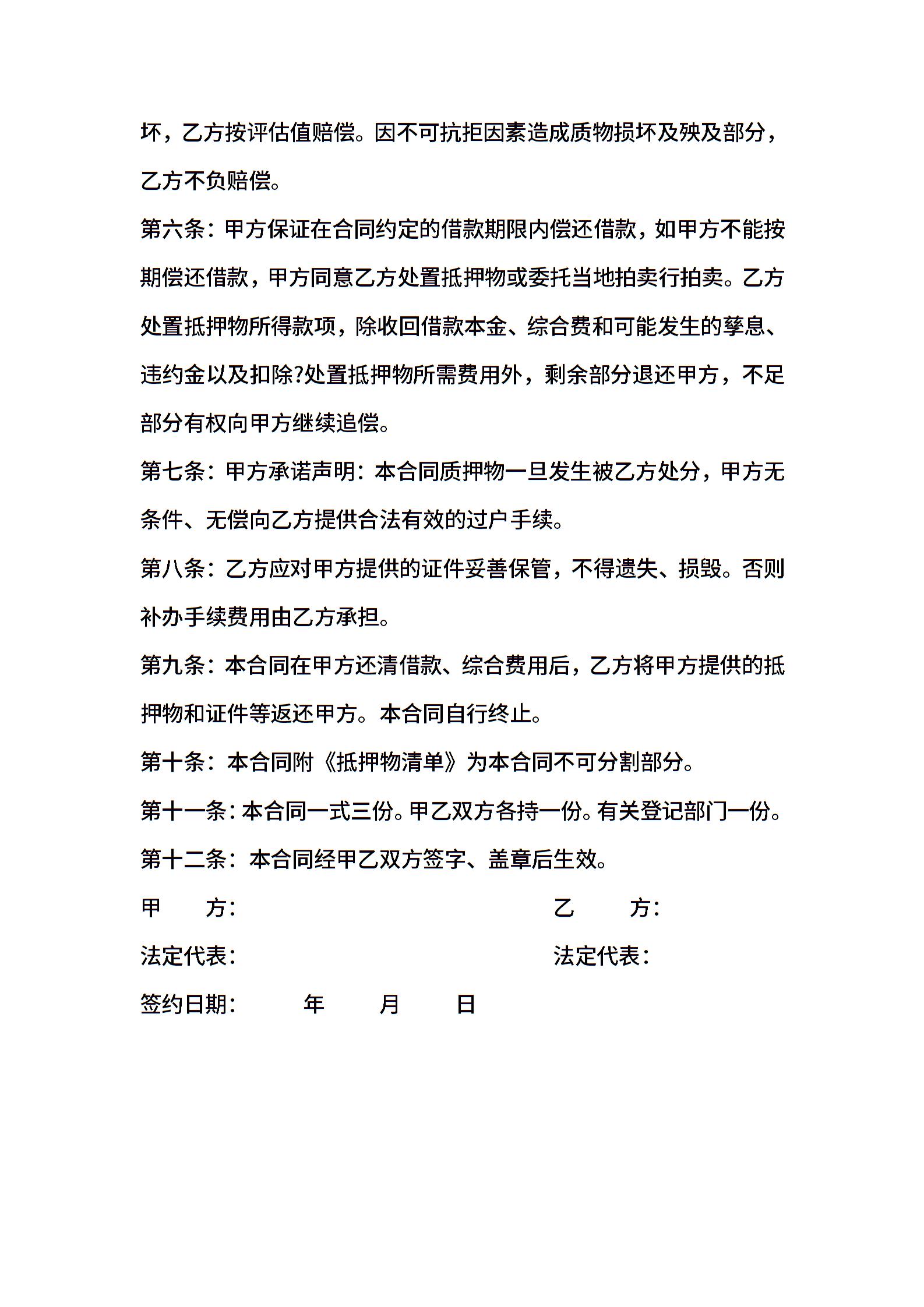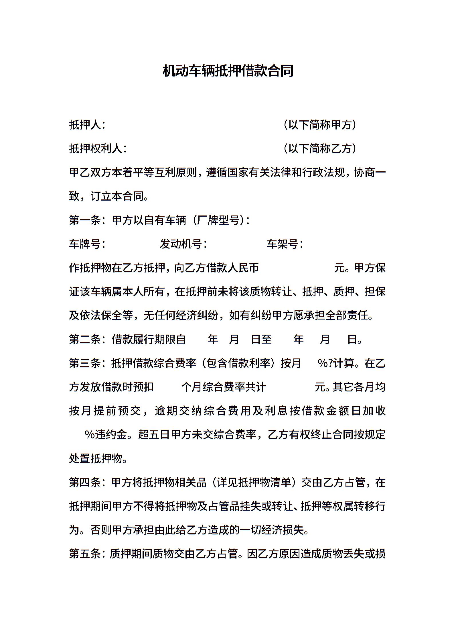 机动车辆质押借款合同