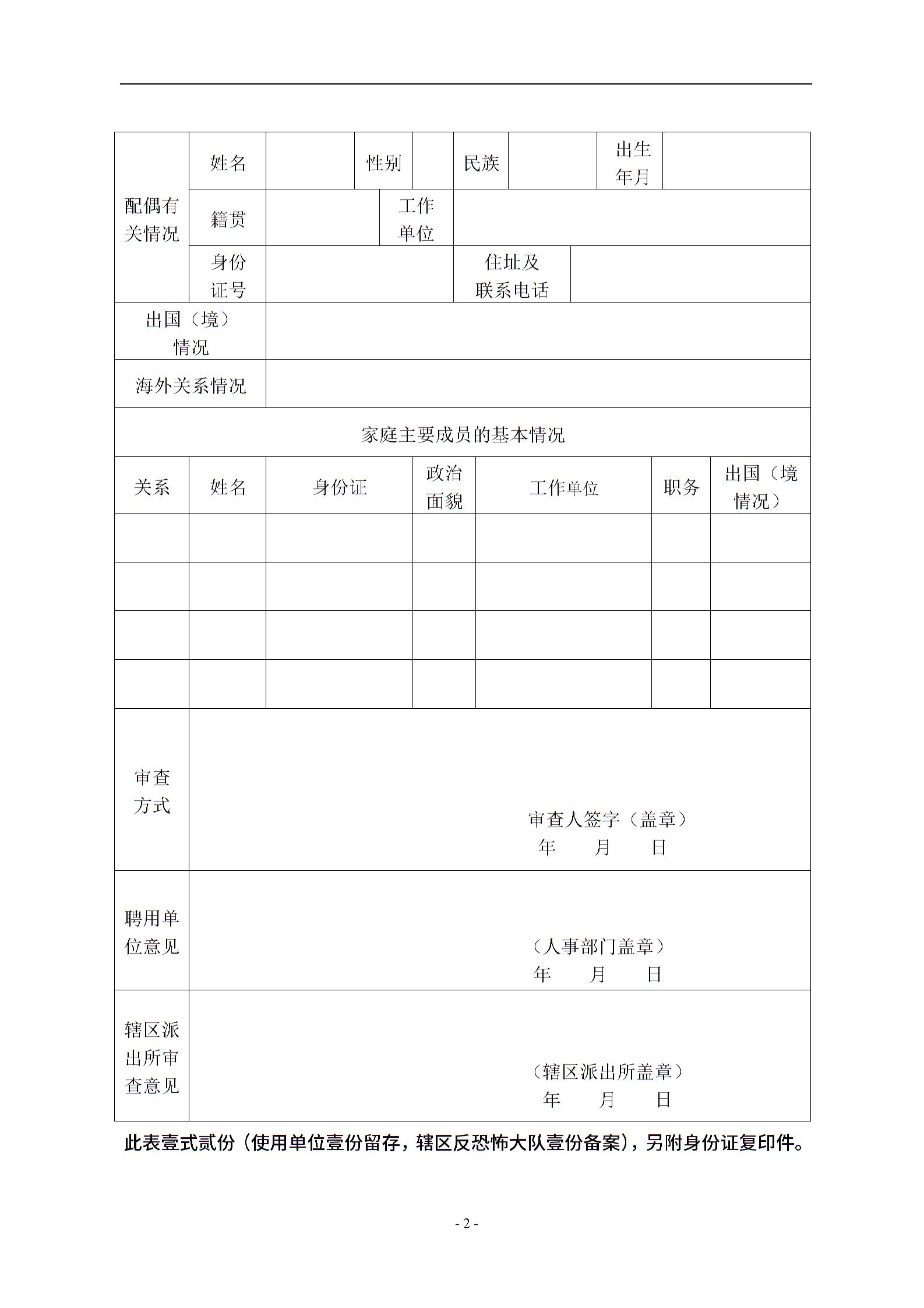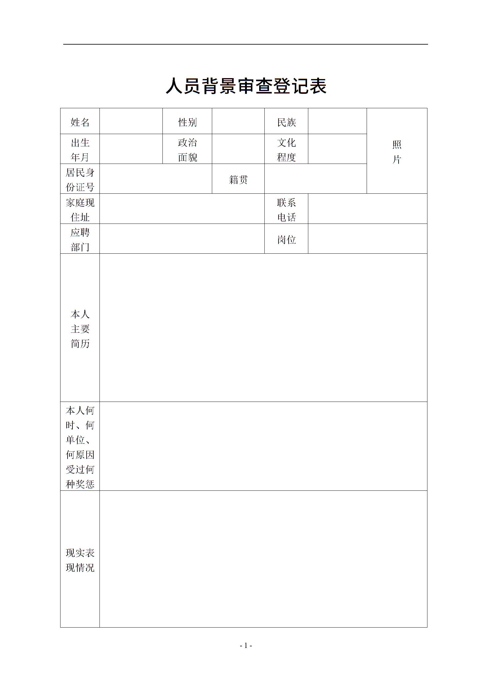 人员背景审查表通用2.27
