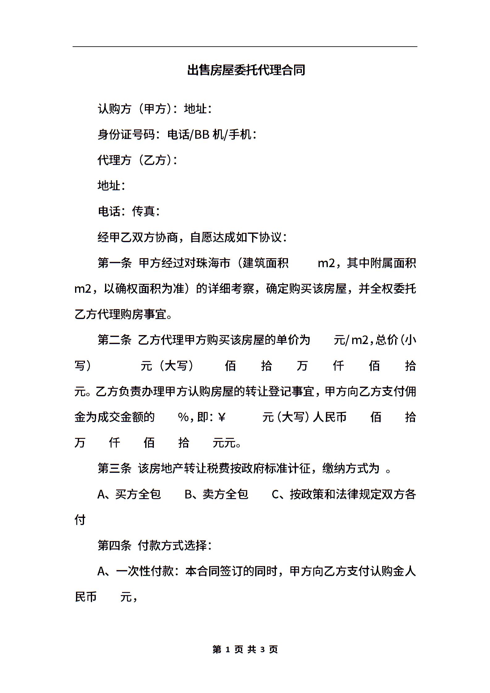 出售房屋委托代理合同.docx