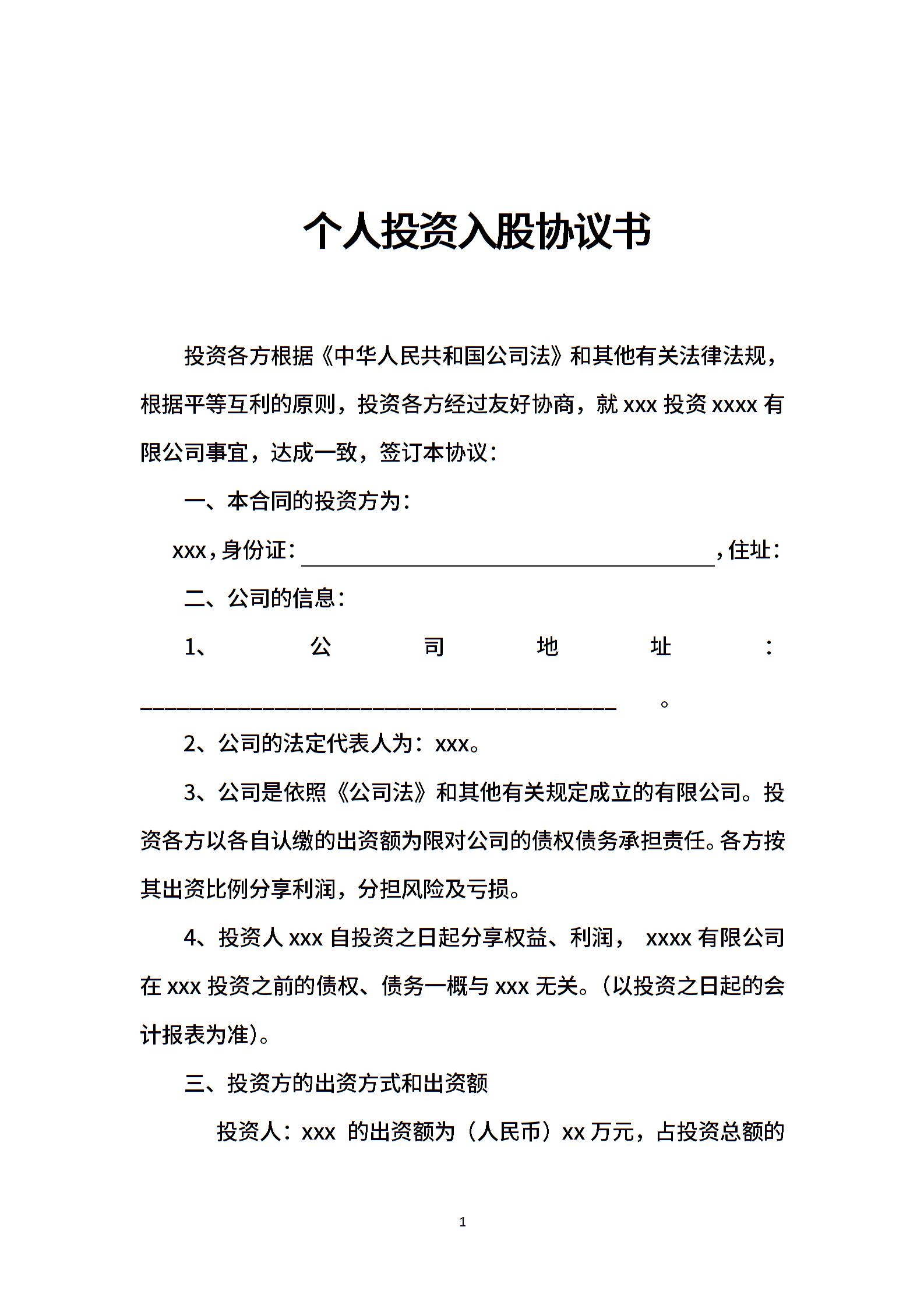 个人投资入股协议书.doc