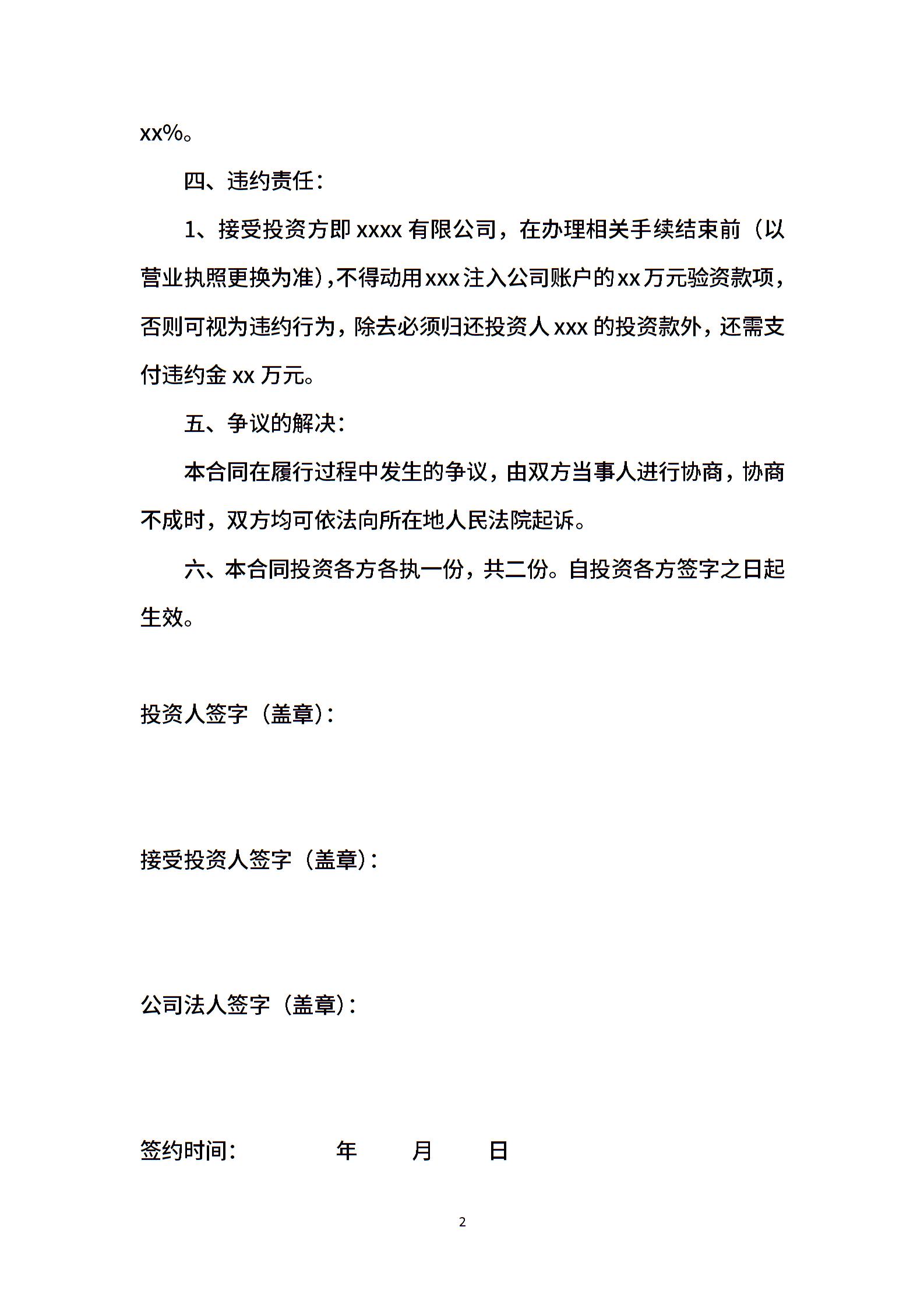 当前位置:量子办公 > 合同模板 > 投资增资 >
