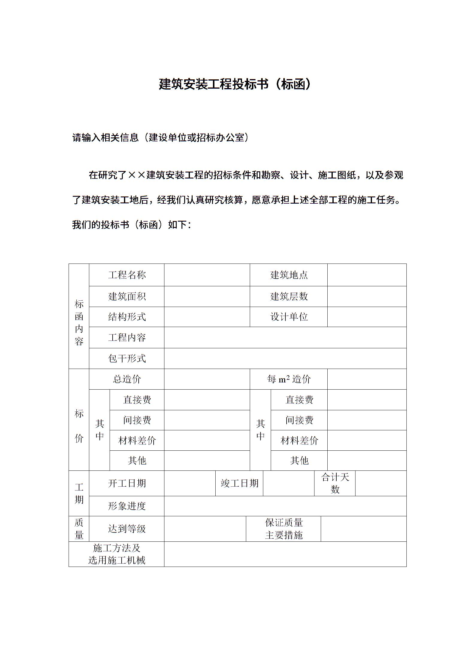 建筑安装工程投标书.doc