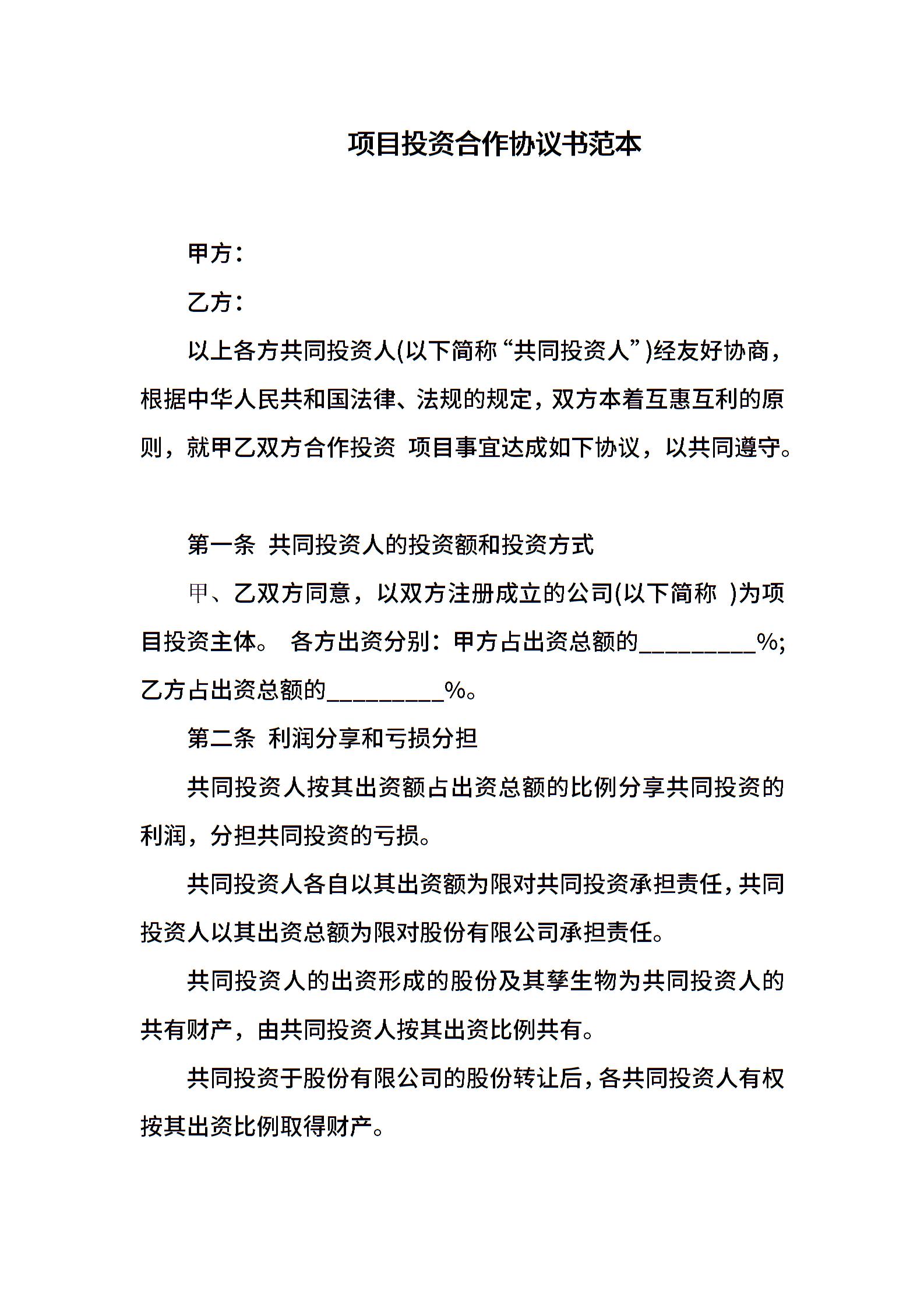 项目投资合作协议书范本.docx