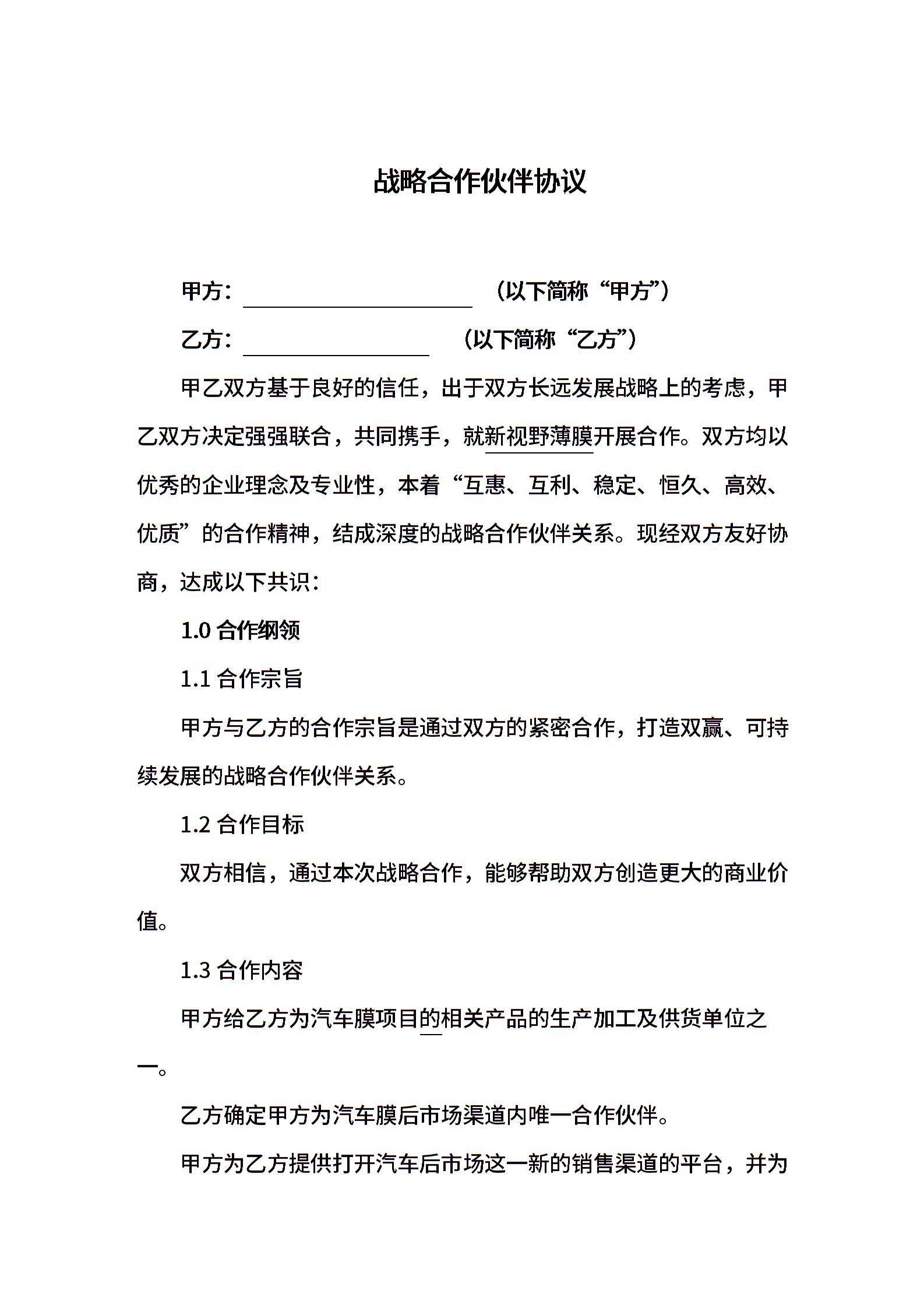 战略合作协议范本
