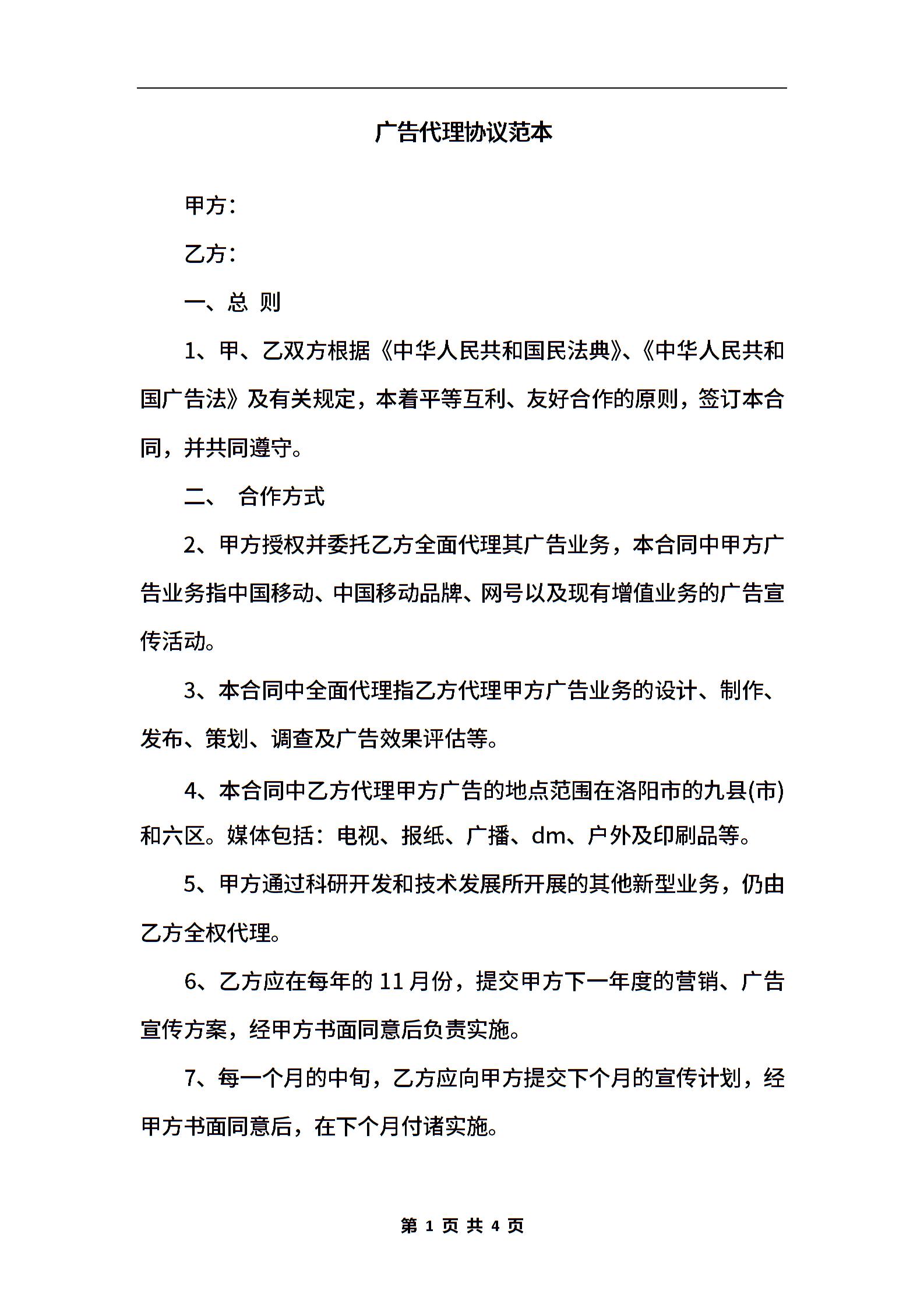 当前位置:量子办公 > 合同模板 > 代理合同 >