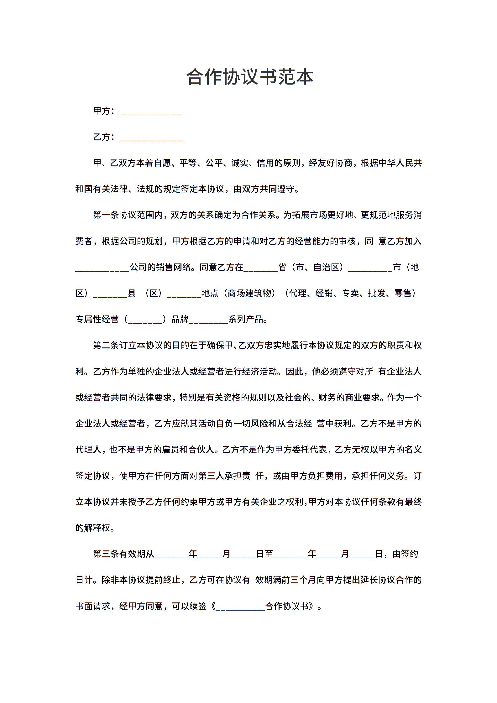 当前位置:量子办公 > 合同模板 > 合作合同 >