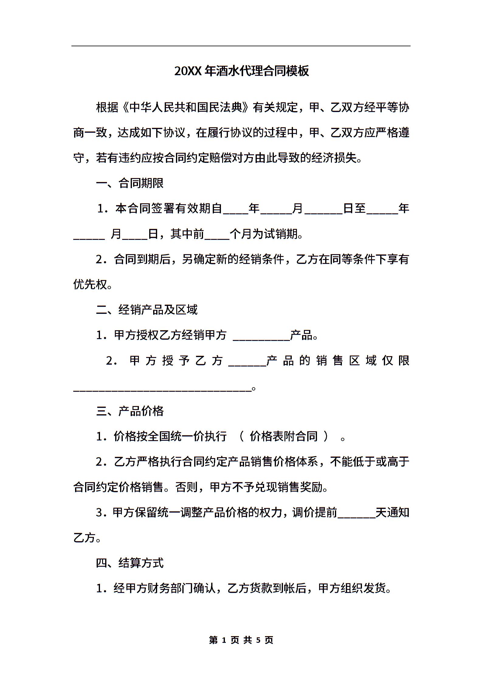 2020年酒水代理合同模板.docx