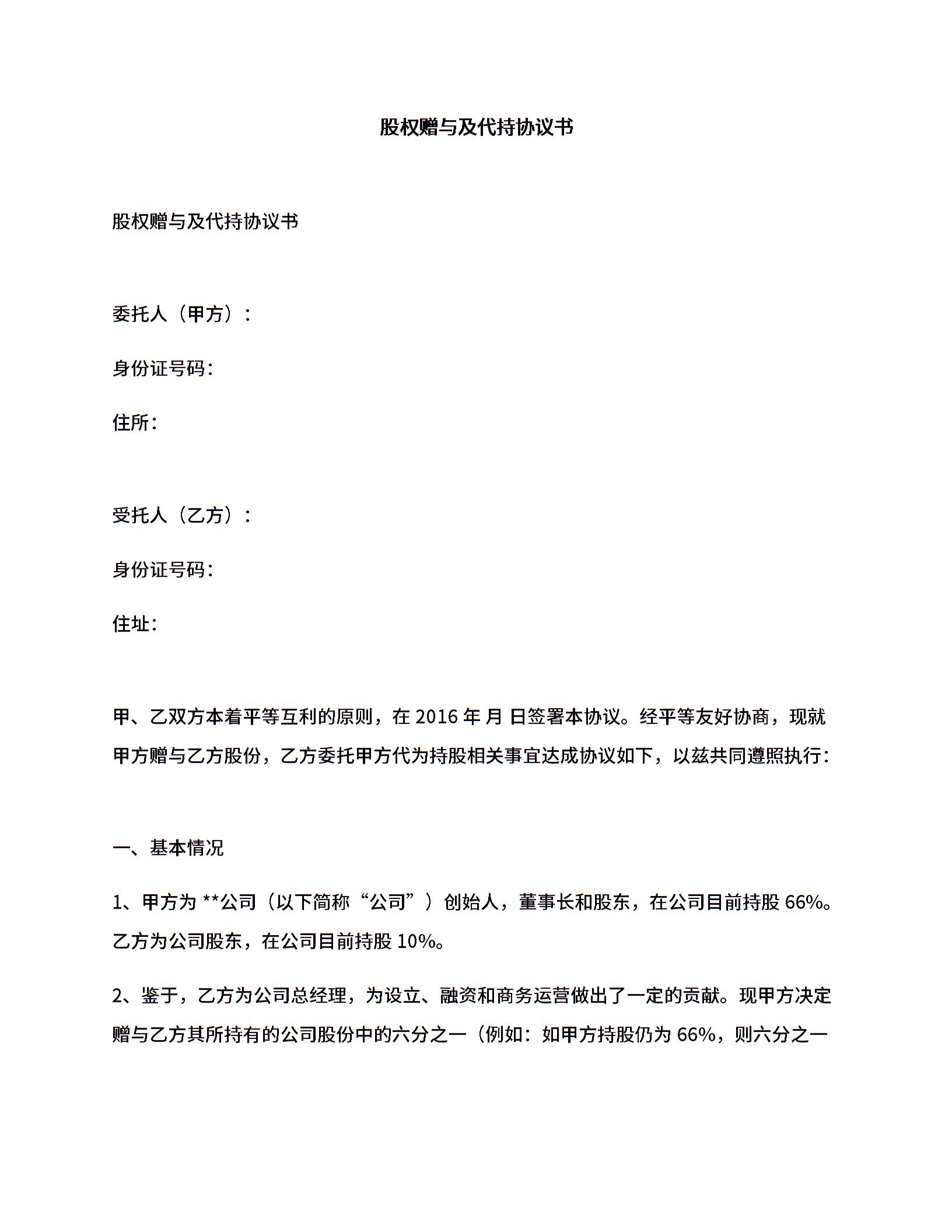 股权赠与及代持协议书.docx