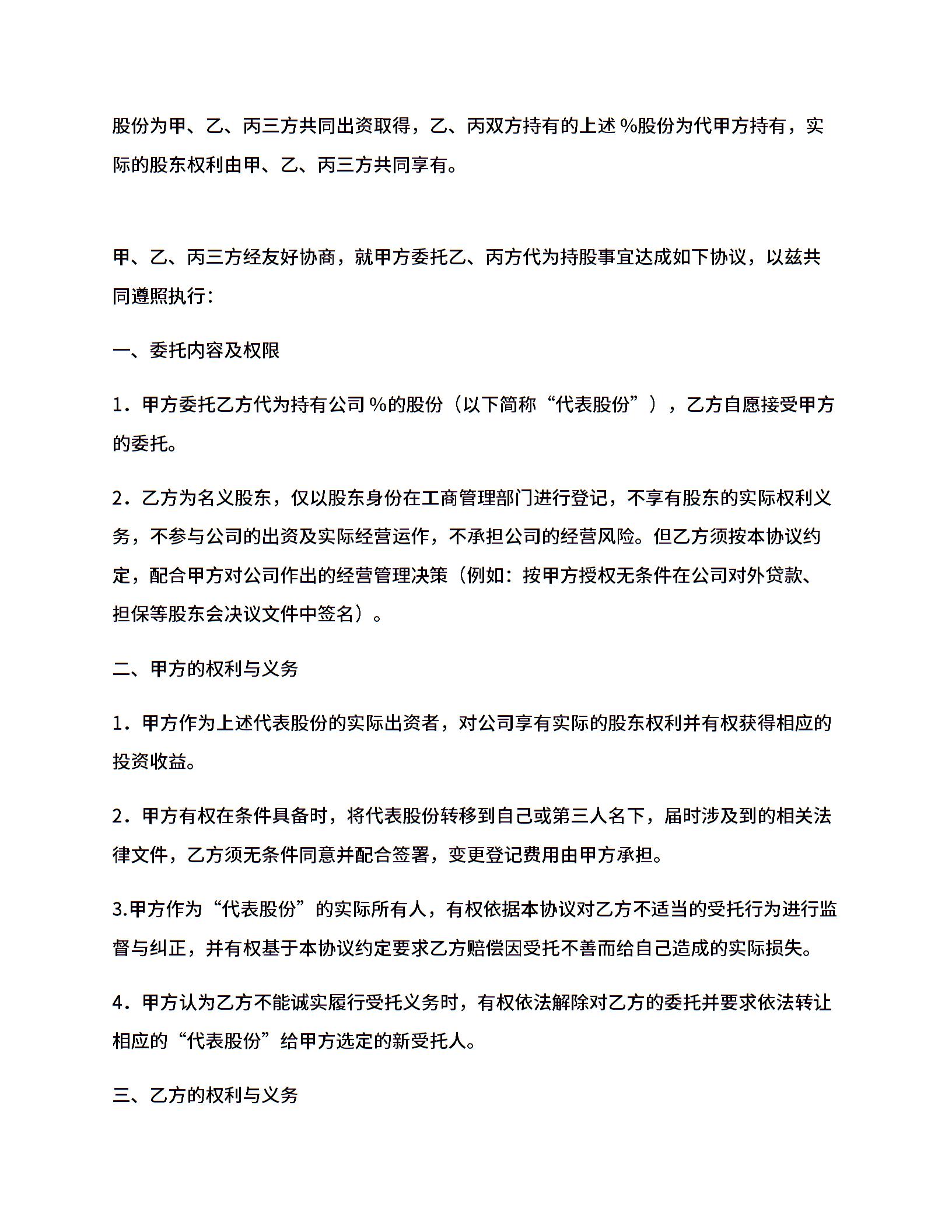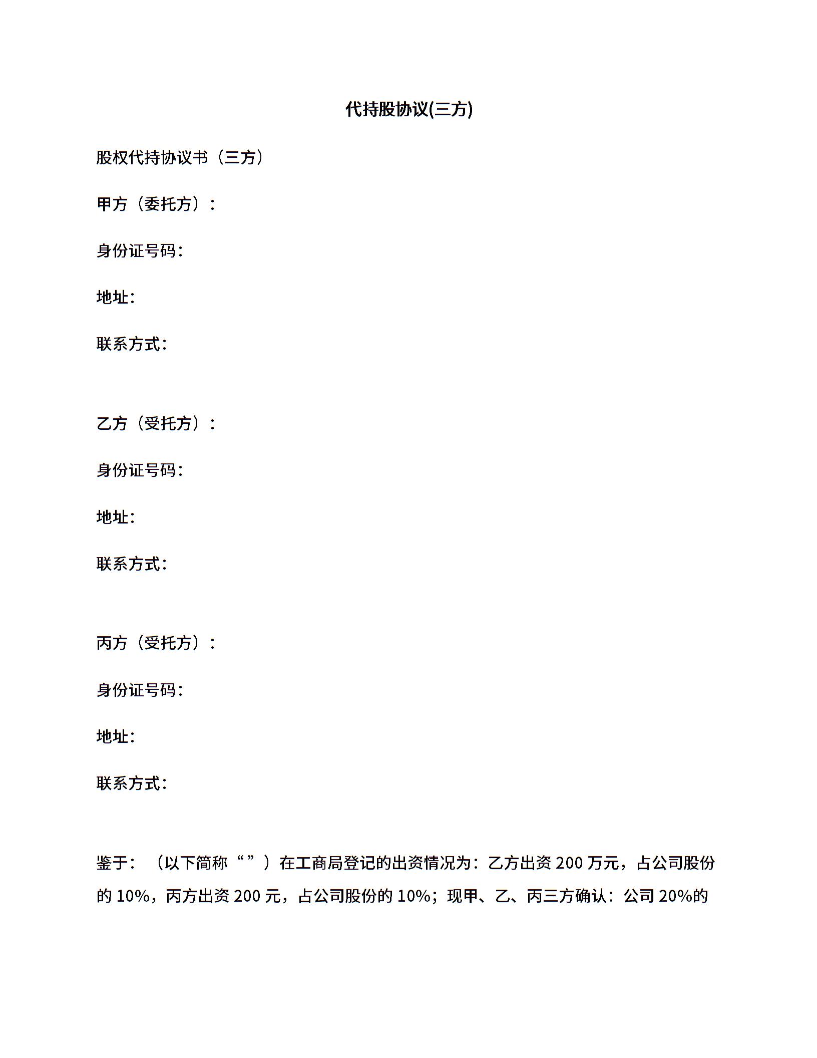 代持股协议(三方).docx