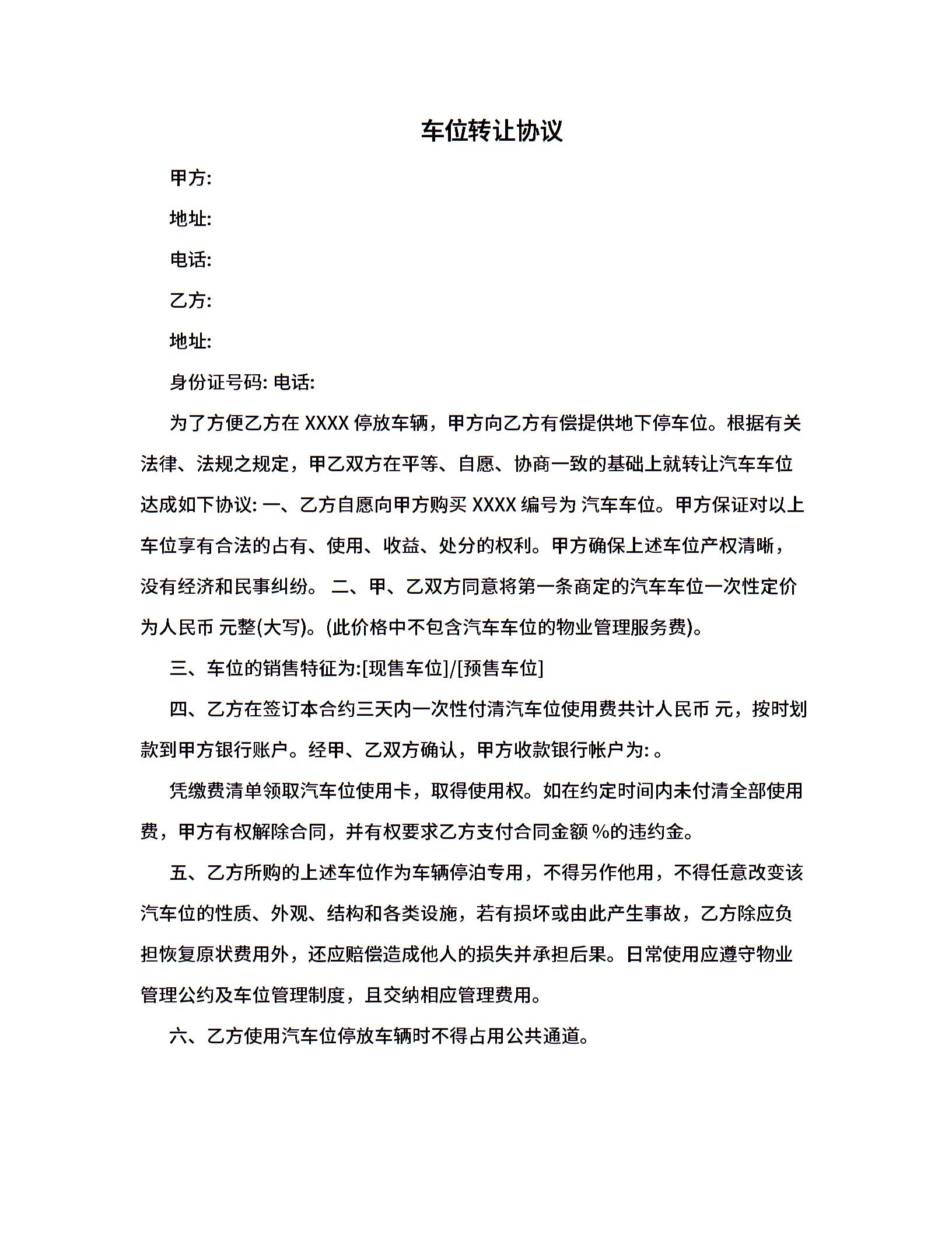 车位转让协议.doc