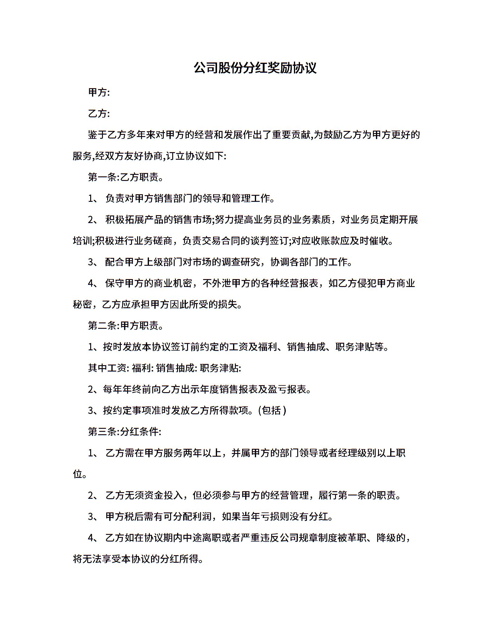 公司股份分红奖励协议.doc