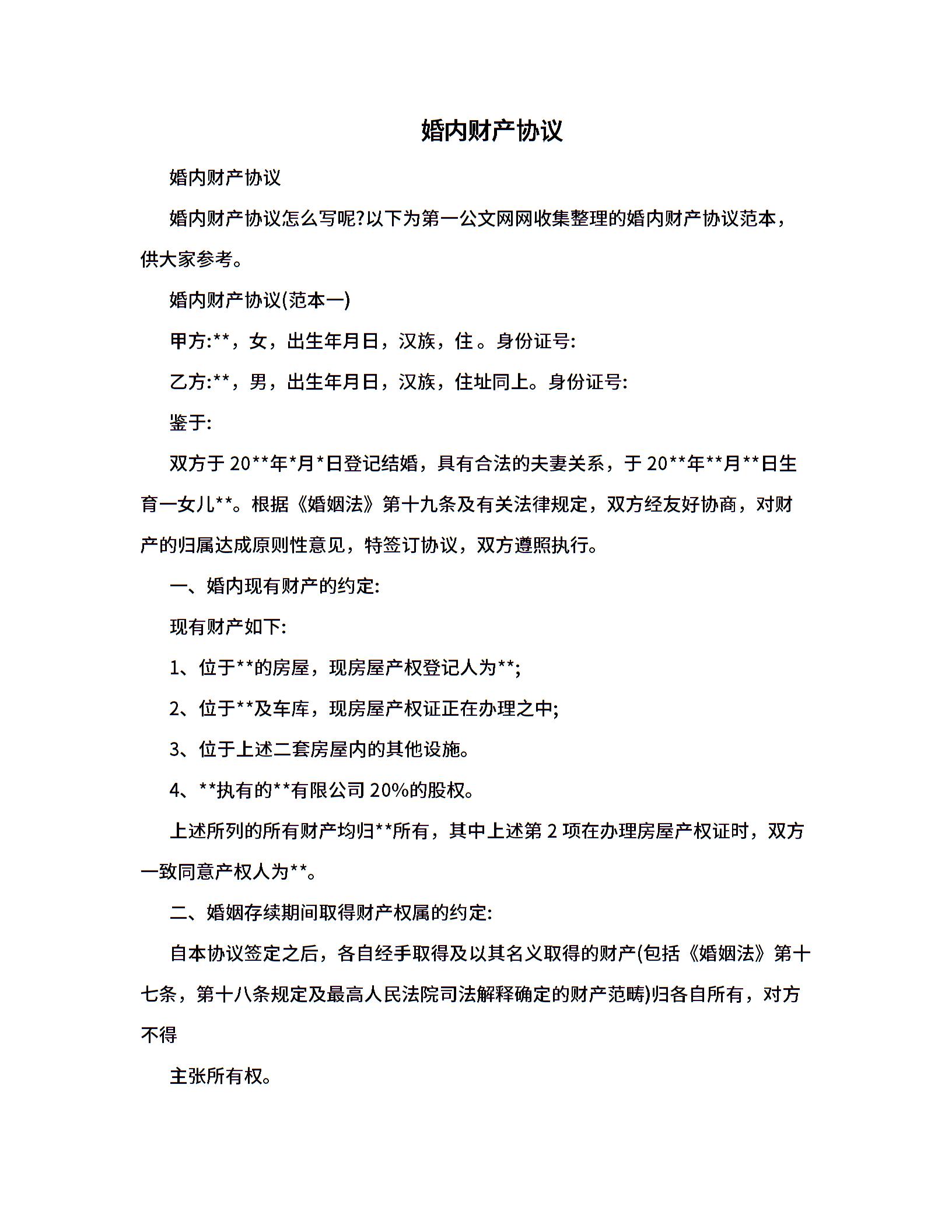 当前位置:量子办公 > 合同模板 > 婚内协议 >