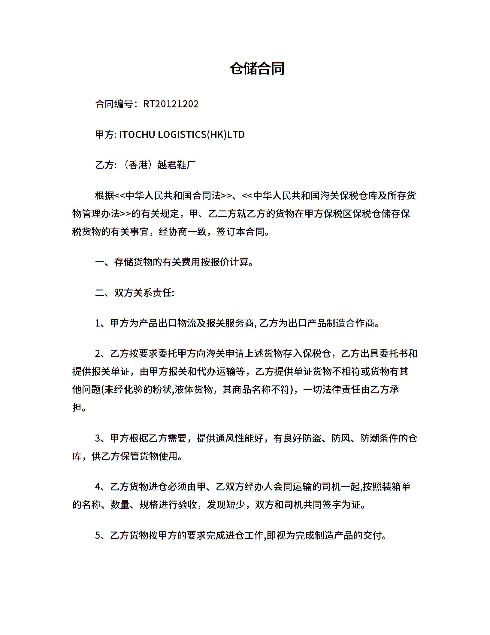 当前位置:量子办公 > 合同模板 > 仓储合同 >