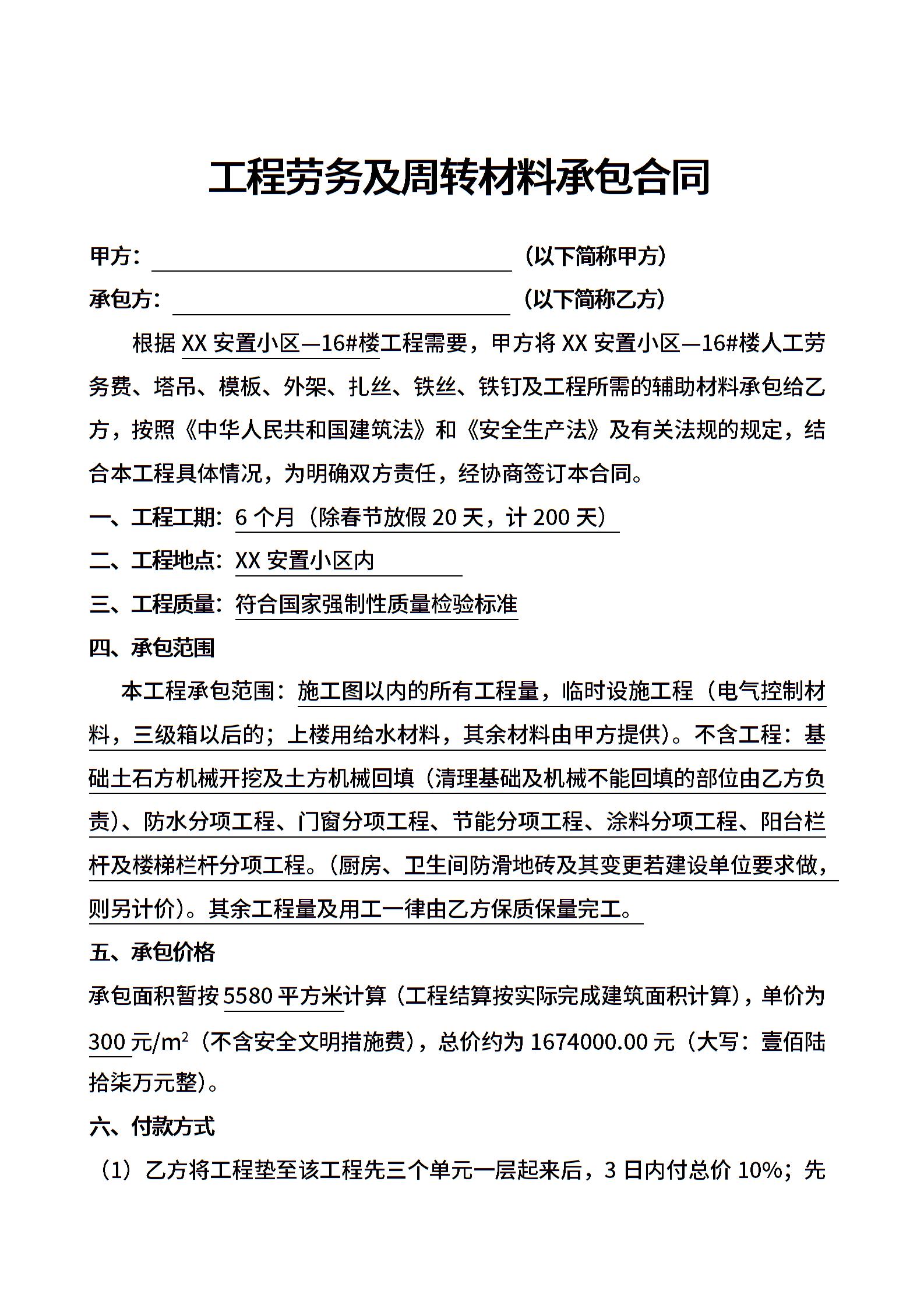 工程劳务及周转材料承包合同示范文本.docx