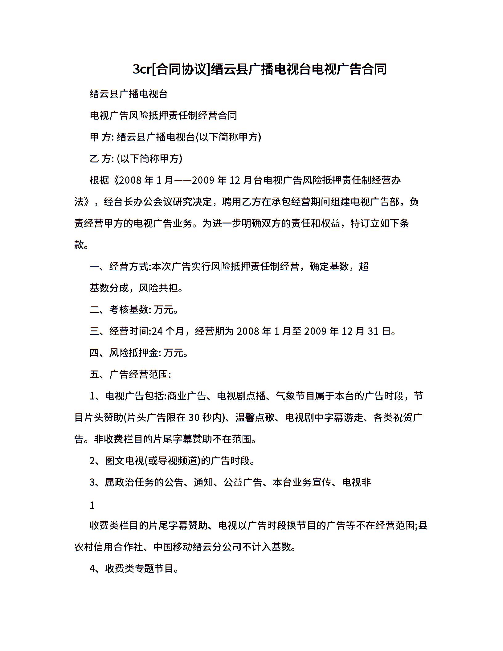 3cr[合同协议]缙云县广播电视台电视广告合同.doc