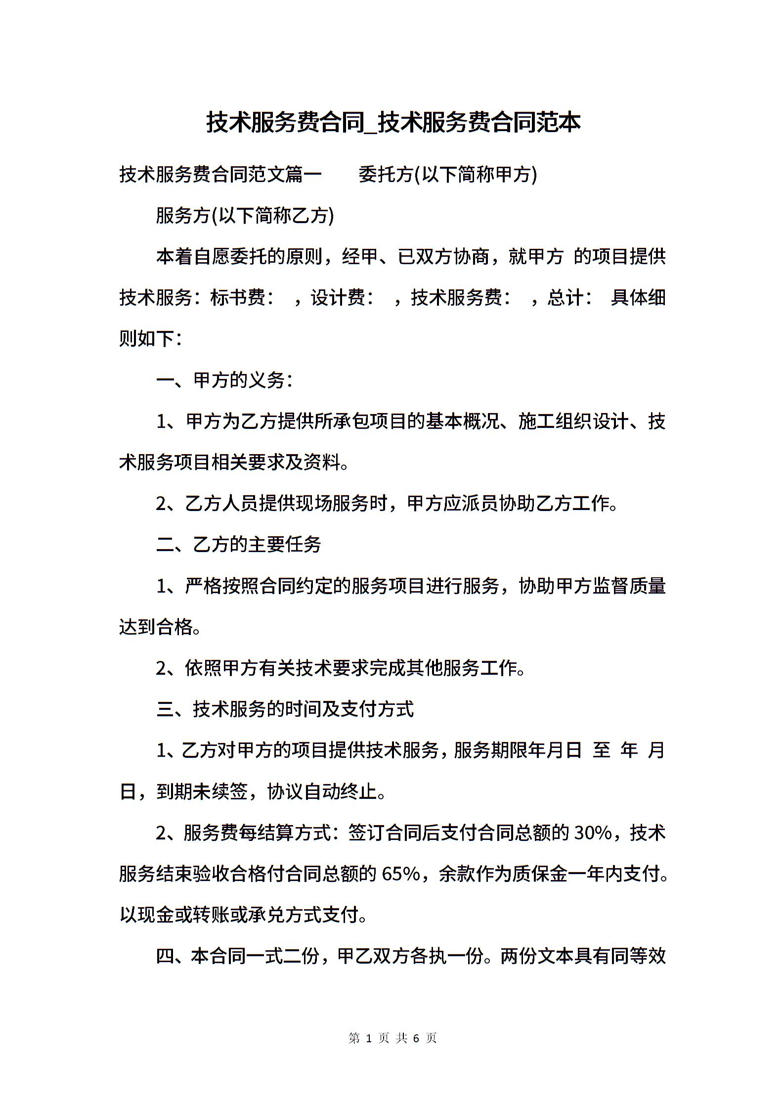 技术服务费合同_技术服务费合同范本.docx