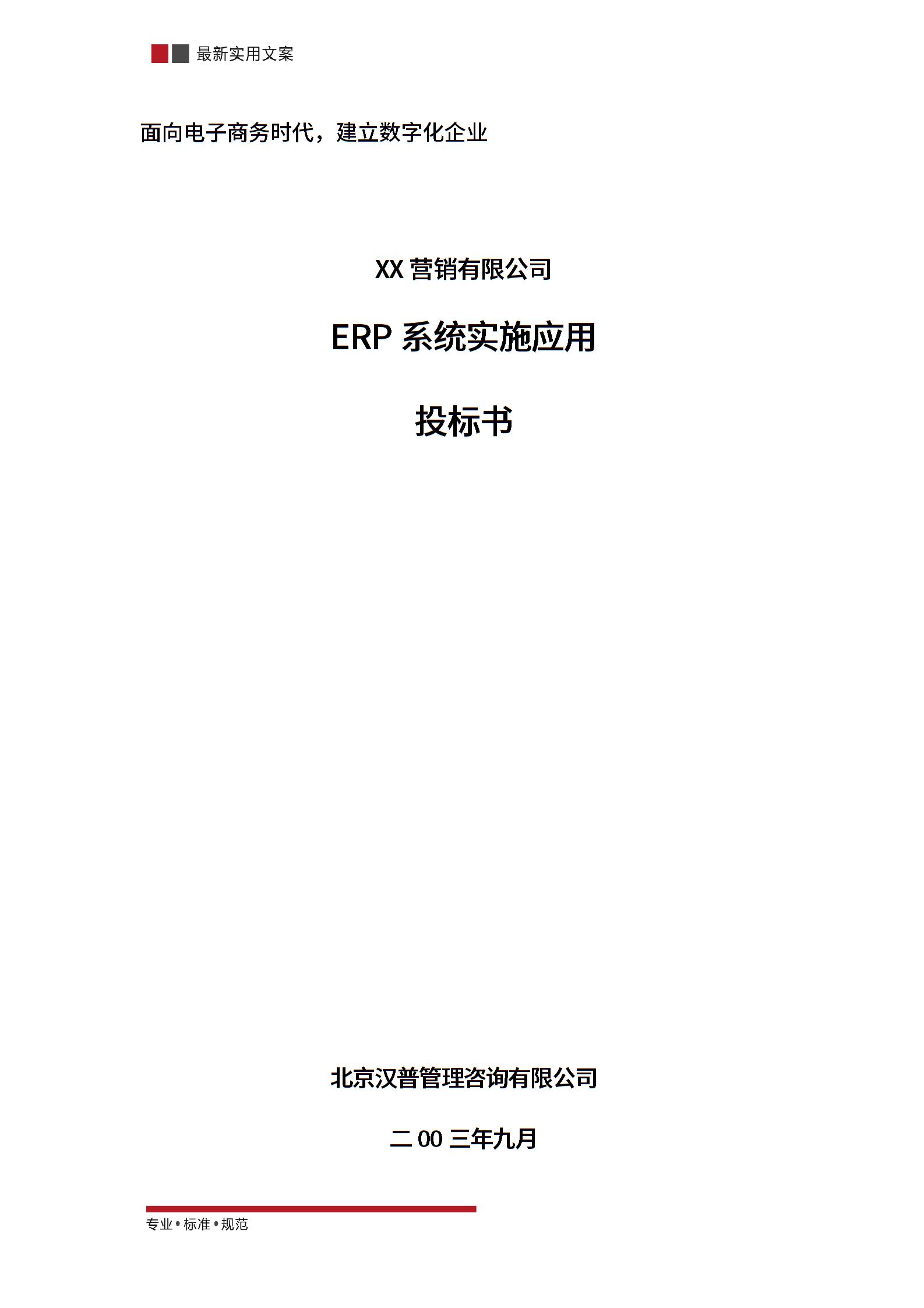 XX营销有限公司ERP系统实施应用投标书(实用文案).docx