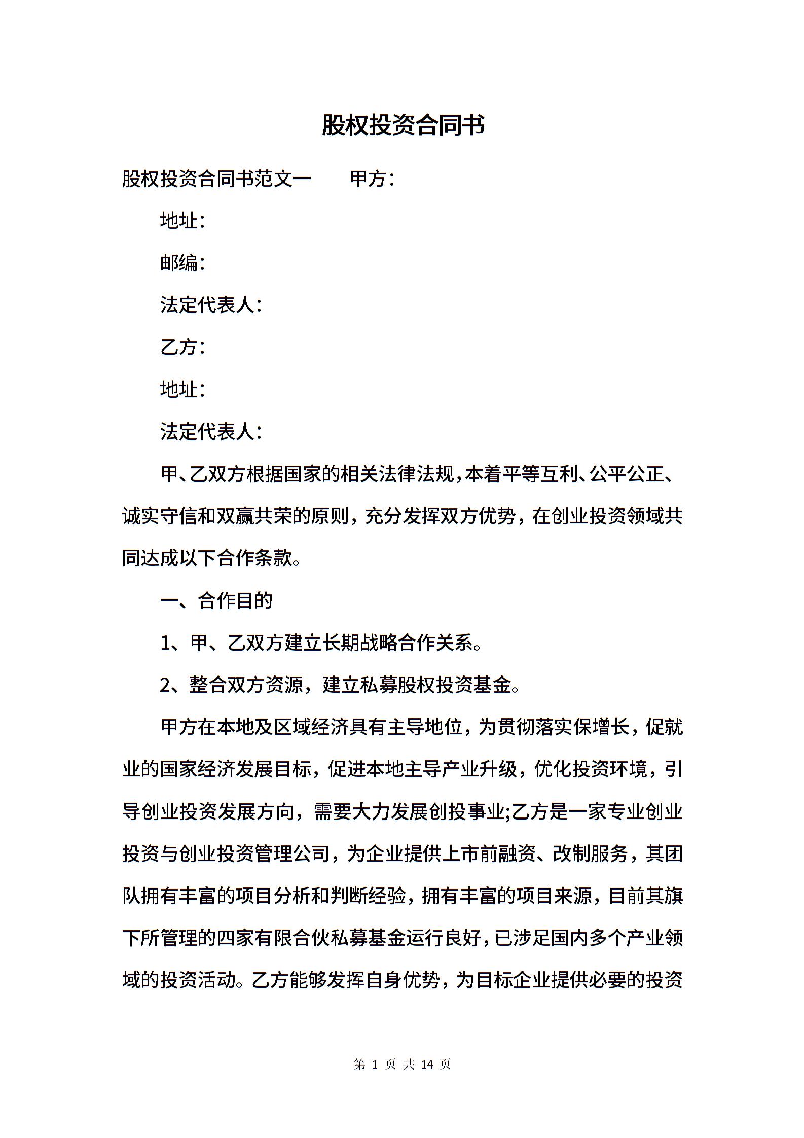 当前位置:量子办公 > 合同模板 > 投资增资 >