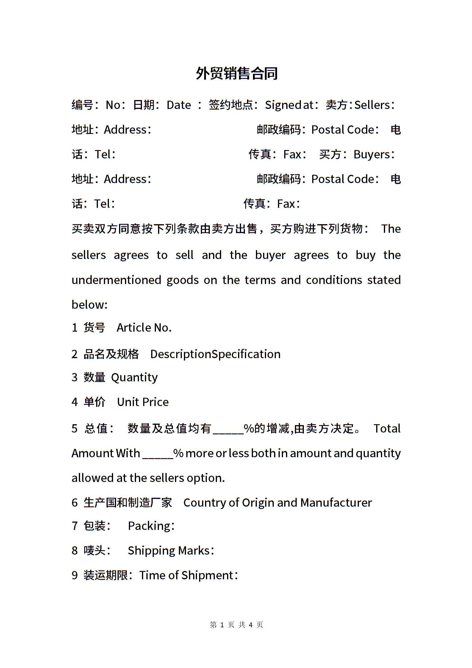 当前位置:量子办公 > 合同模板 > 销售合同 >