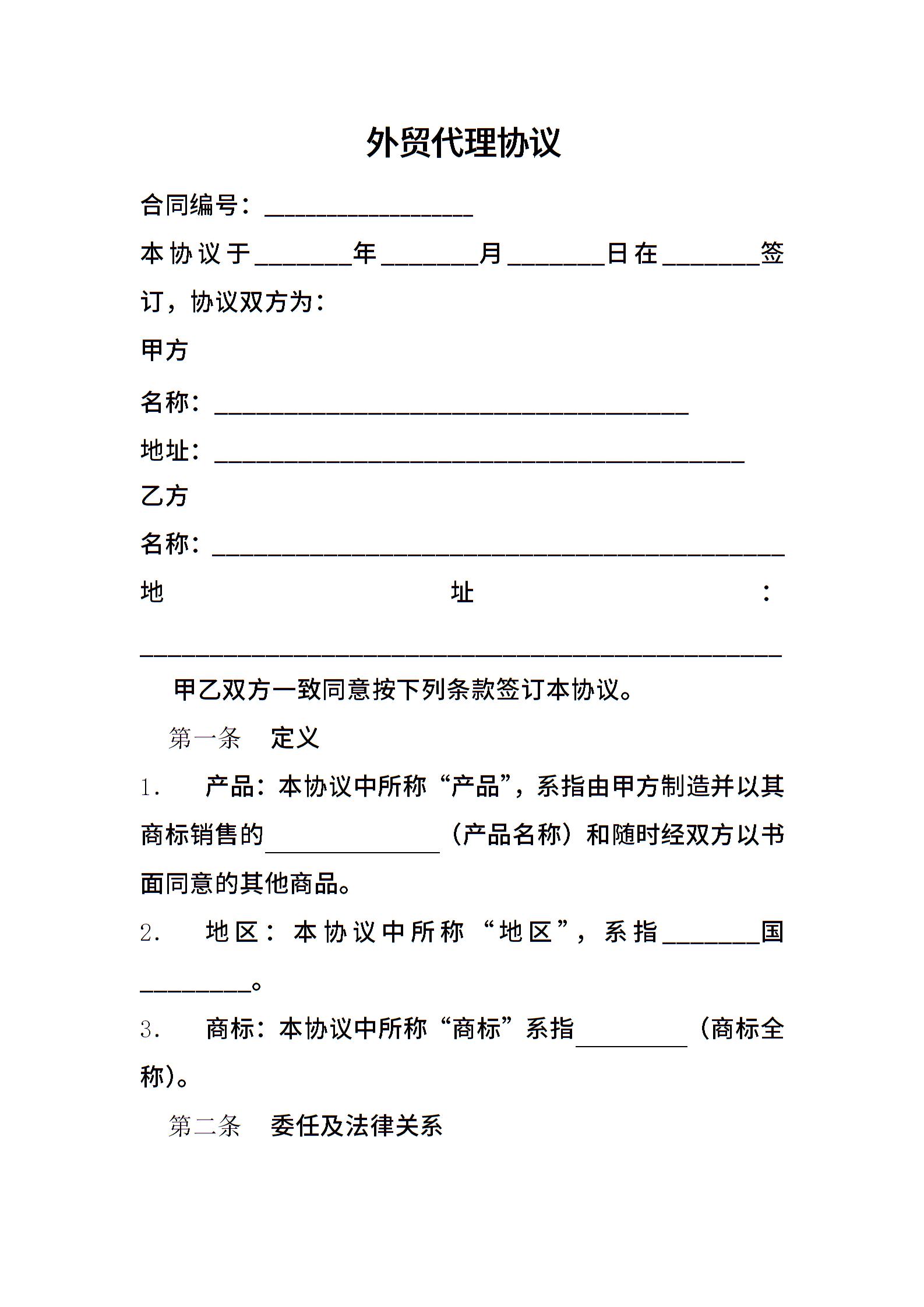 69 外贸代理协议范本