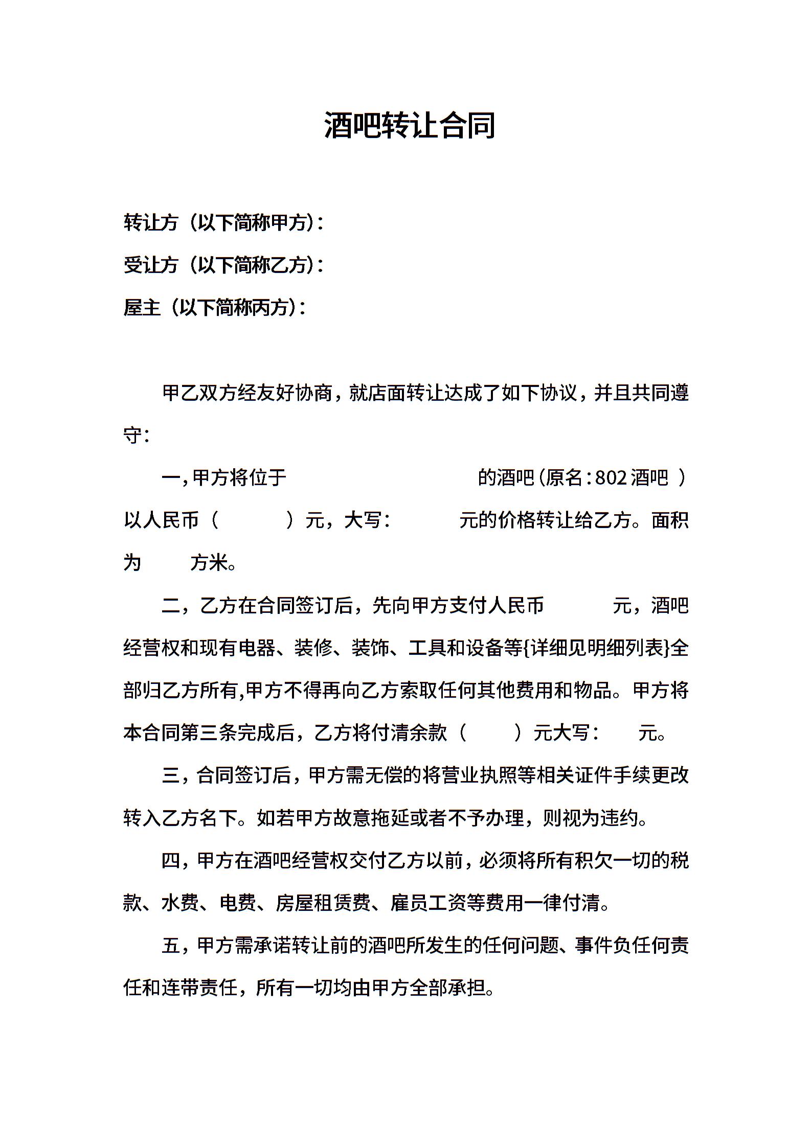 当前位置:量子办公 > 合同模板 > 转让合同 >