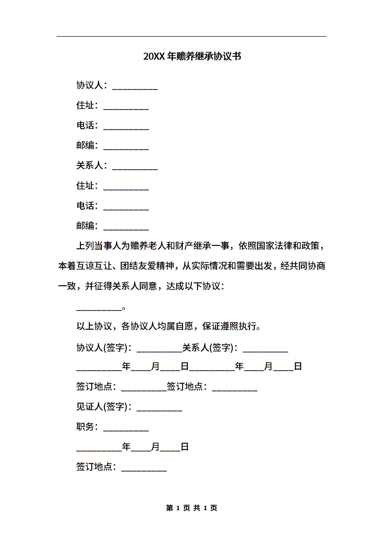 2020年赡养继承协议书.docx