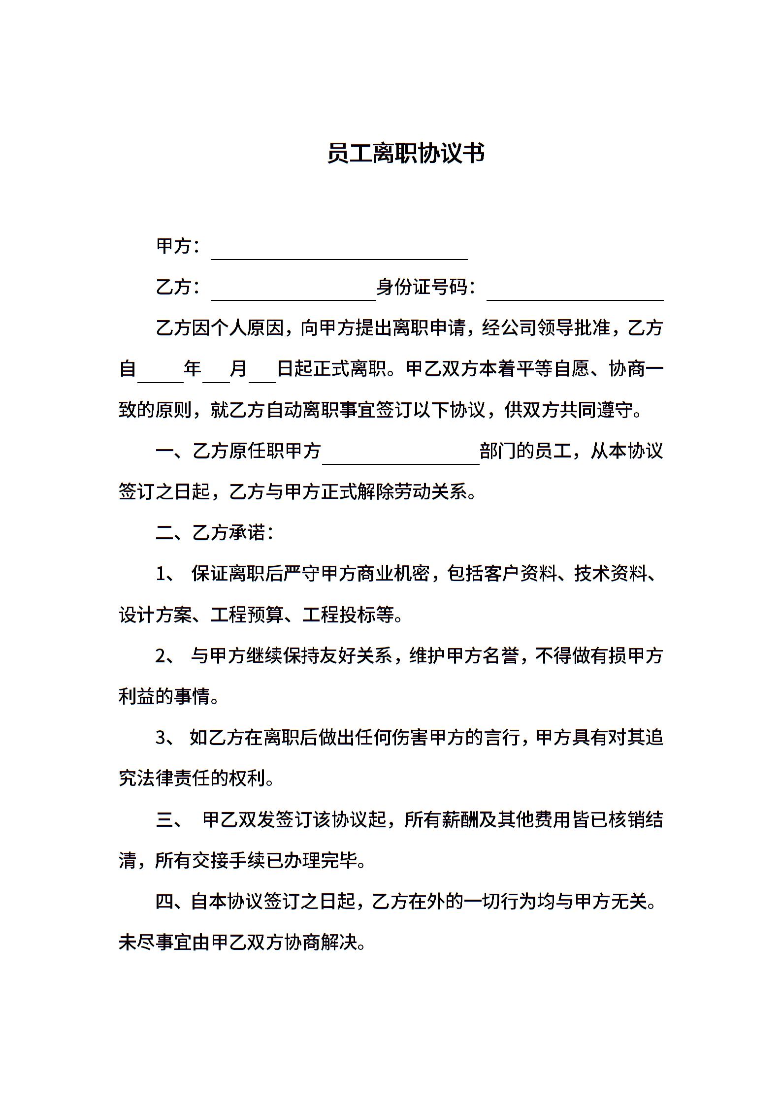 当前位置:量子办公 > 合同模板 > 离职协议 >