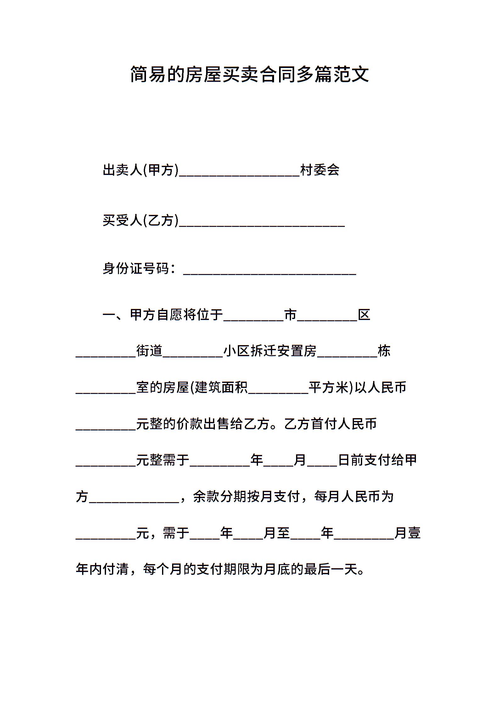 简易的房屋买卖合同多篇范文.doc