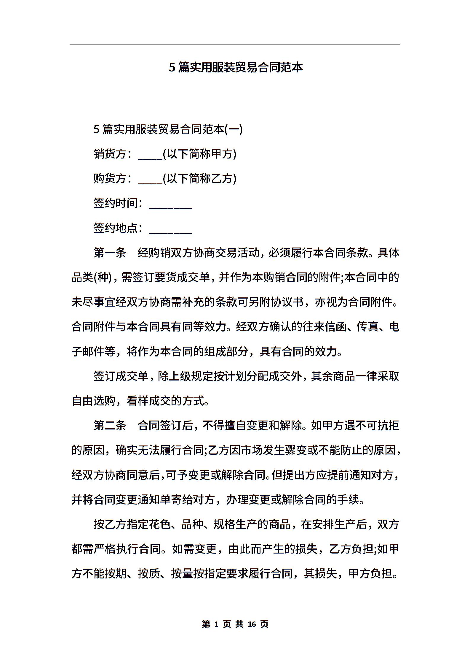 5篇实用服装贸易合同范本.docx