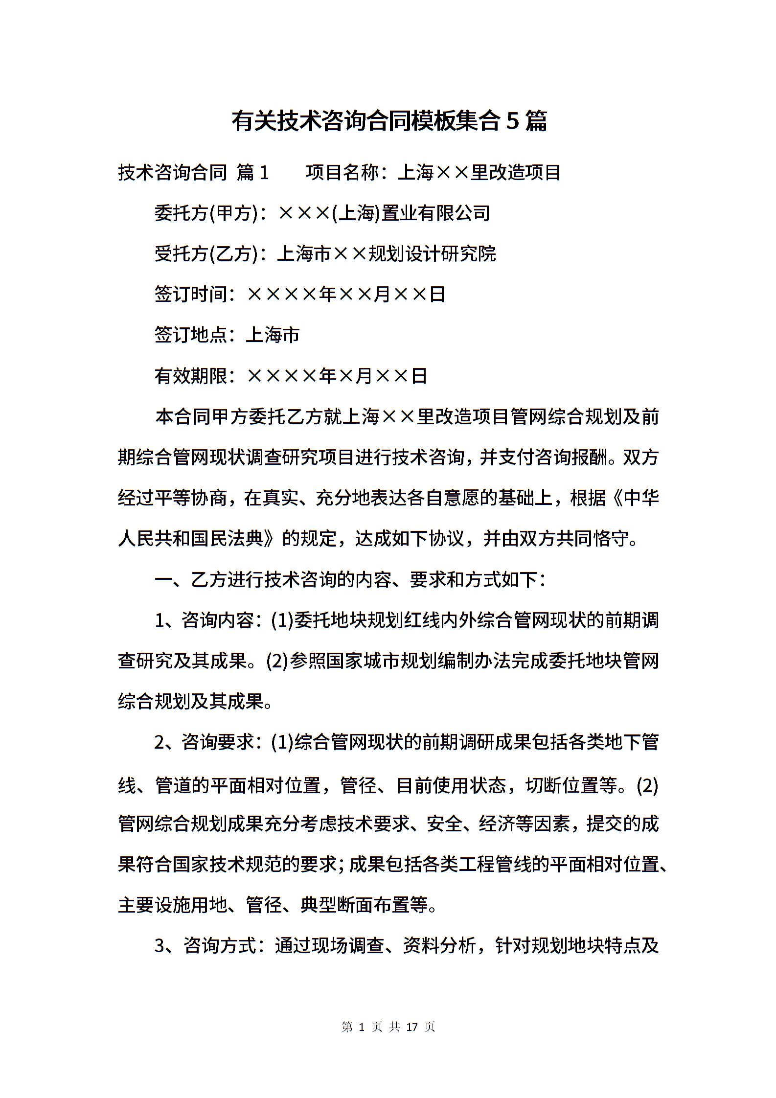 有关技术咨询合同模板集合5篇.docx