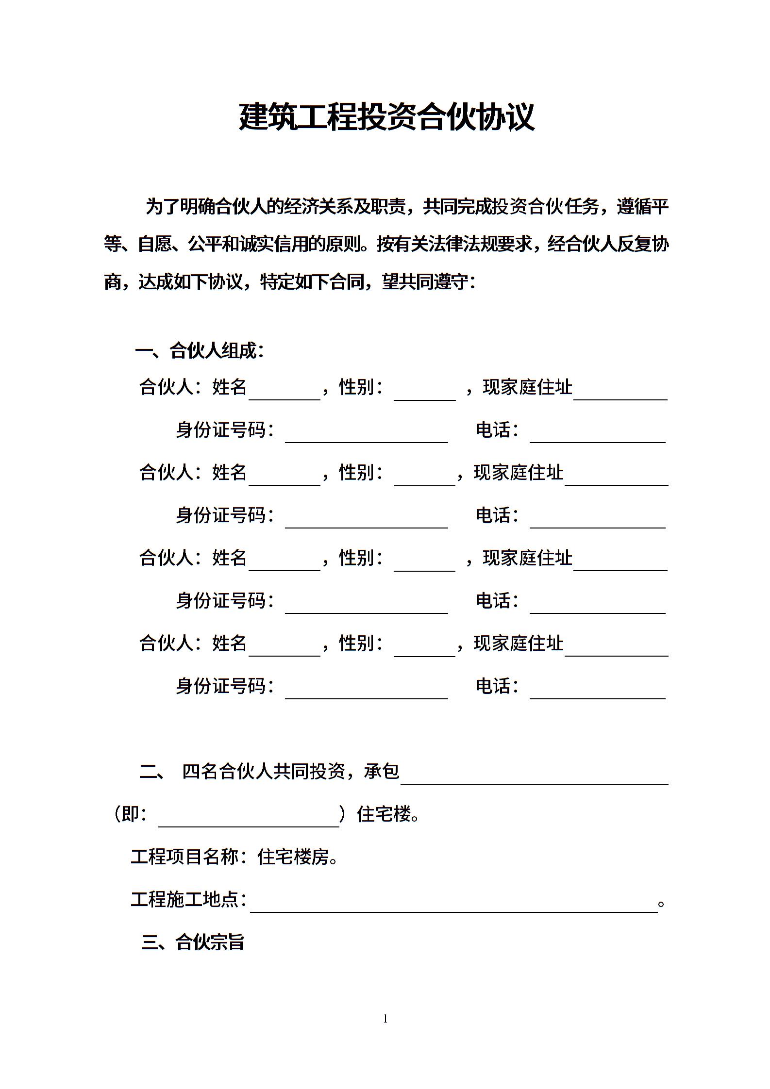建筑工程投资合伙协议.doc